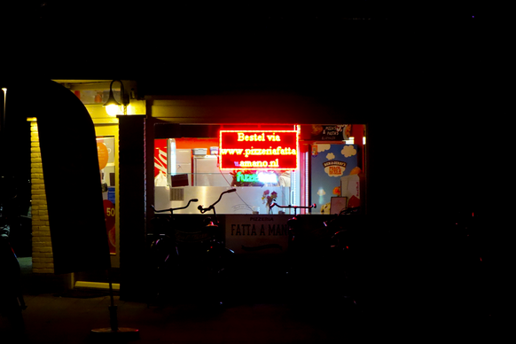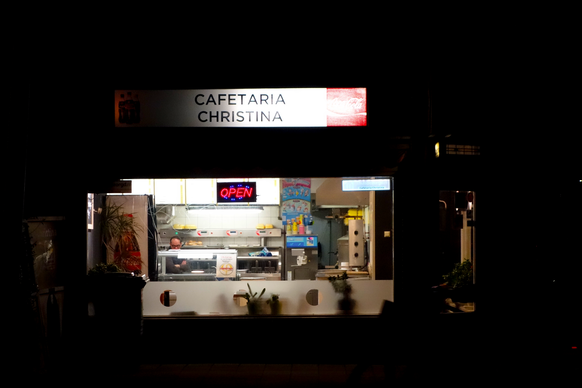 Everything was closed except bars, restaurants and snackbars. I was immediately drawn towards the snackbars because they feel familiar to night-shops you might find in other countries but they still have a very local quality to them. They also manage to have a very unique character while somehow still looking oddly similar to each other. Their facades create windows into the small scenes that have a filmic and eerie qualities to them.