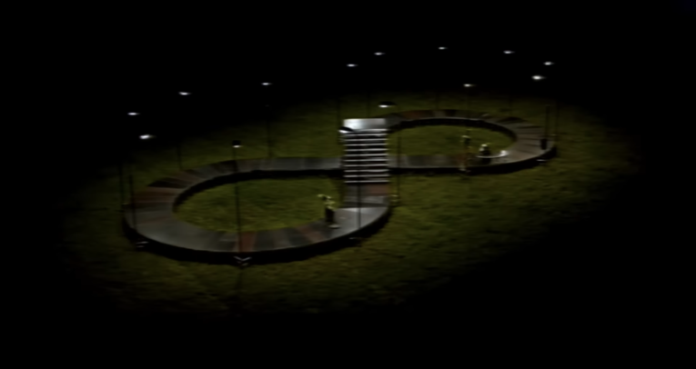 One night as I was walking home I saw these flower spheres, that had been installed in the streets to celebrate easter. They reminded me of the music video for the song egobaby by Swedish artist bladee. In this video directed by Hendrik Schneider you see a man walking around on a structure surrounded by an empty grass field. The strong urban lighting creates a sharp contrast to the darkness of the night and conveys an eerie feeling. The camera then slowly zooms out to reveal that he is walking around in a circle stuck in an infinite loop. The song is about ego, reminiscence and coming to terms with one’s past as well as one’s future It’s an internal reflexion with melancholic and existential tones. The set created by London based designer Tom Schneider really helps to exacerbate those concepts.