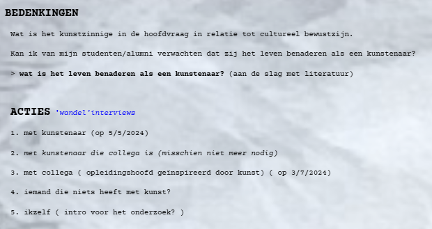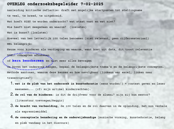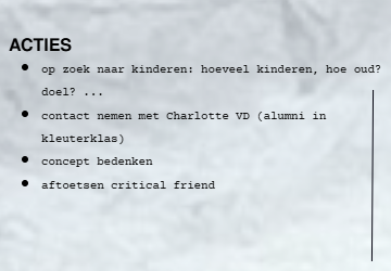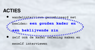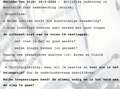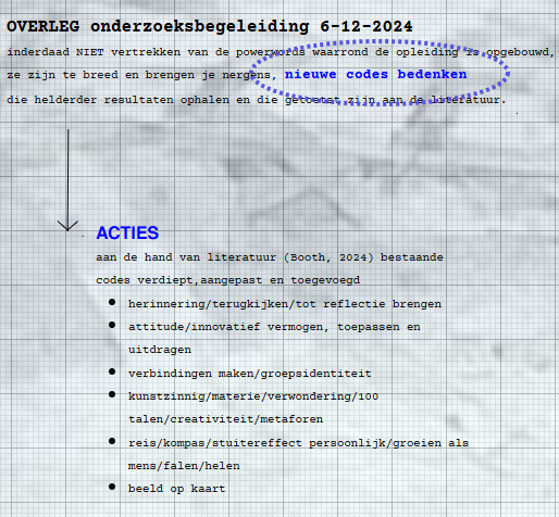 Wordt het resultaat een feedback-rapport-dossier-neerslag voor de opleiding én een gezamnlijk werk.. een pad, een weg, een parcours?