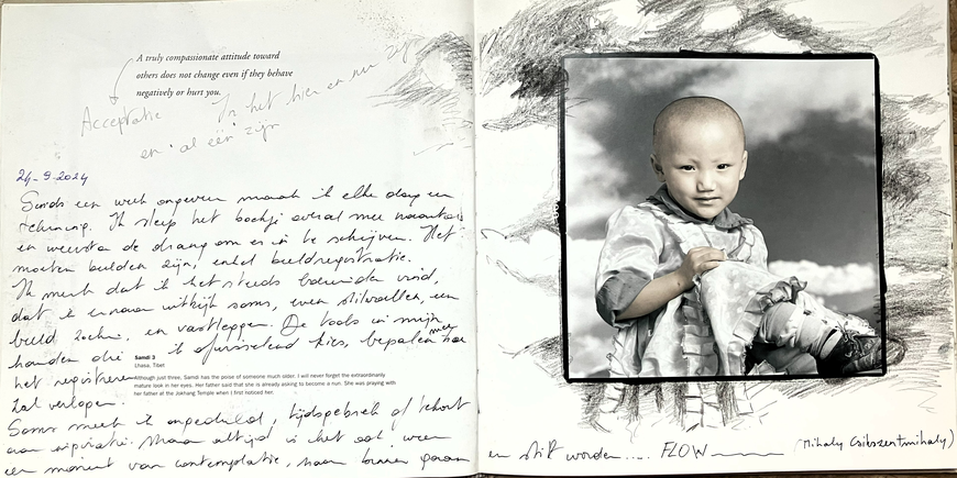 De keuze voor dit boek? Het doet me aan Bhutan denken en omdat ik er terug naartoe wil en omdat ik steeds meer adem en mediteer en trager en bewuster in het leven wil staan.