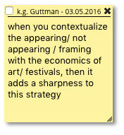 Could it be that an audience would feel subjugated and uncomfortable in democratic situations which are demanding active participation, as in social practice as in theatrical set-ups? This, however, varies based on how well-informed the subject is of the situation and the degree their opinion affects their own situation. One is more reluctant and uncomfortable to vote on an ill-informed referendum of distant effect on one's daily life in comparison to voting on municipal elections. Similarly in theatrical situations, participation of audience needs to be clearly communicated and employed as a vital contribution or rather collaboration that affects the course of the performance, rather than an enactment of pre-determined sequences set-out by the maker(s). Not to say that the latter is an invalid method, but just does not qualify for the notions of participatory art.