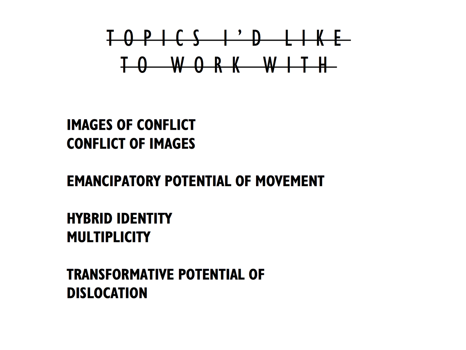 Therefore how to go into strategies of complexifying identity through speculation and multiplication? How to use the body and its objective history towards a complexity of appropriating multiple identities at once? And how to make a physical shift between the new world (post-colonial west asia) and a place deeply embedded in colonial history (west europe)?