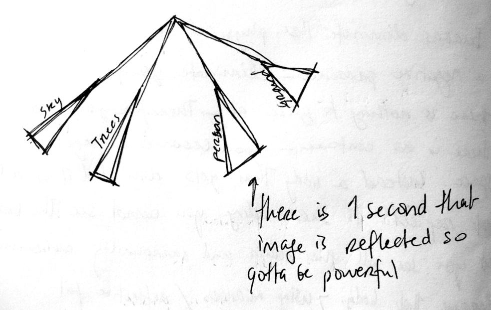 I feel a certain resistance towards the doing when things become too staged. It feels as if the urge of making is satisfied by verbalising the thoughts aided with sketches and scale models. Although making the work will undoubtedly reveal new information especially in terms of interacting with the audience, there is a point during the thinking process where I feel uneasy and become less curious. Is it a resistence towards an end product? Or holding back to prolong the exciting feeling of pondering and brainstorming?