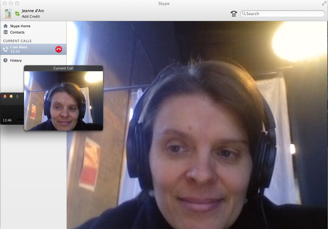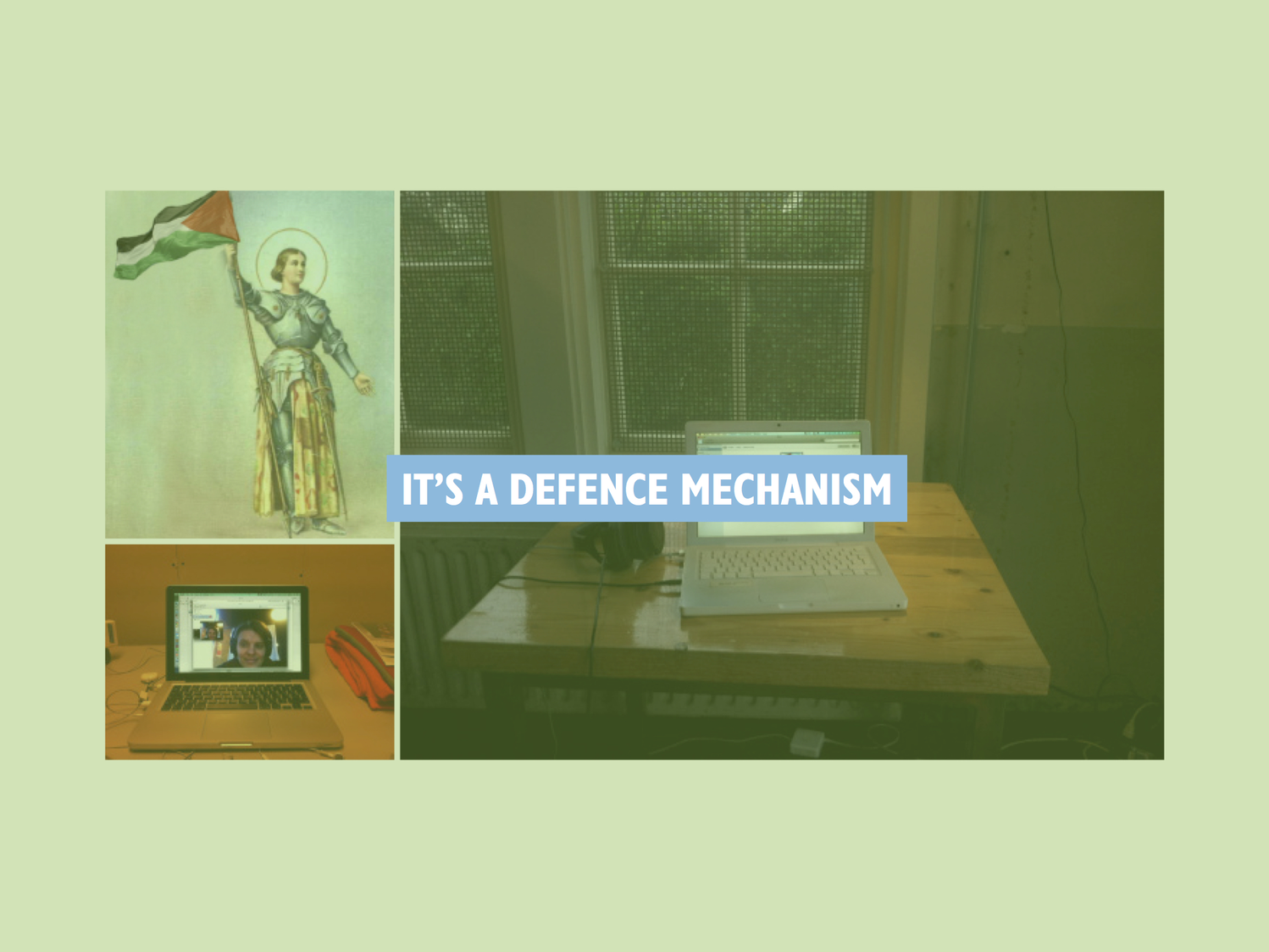 A Skype conversation between Jeanne d'Arc - who is re-born in nowaday Palestine - and a participant on the contemporary notions of idealogy, heroism and terrorism through historical, fictional and medial distance.