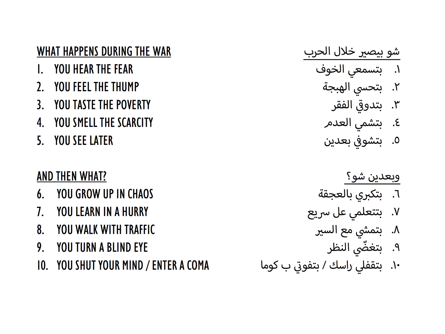 I DON’T HAVE TO TELL THE ADJECTIVES THAT IT WAS SHIT AND CLAUSTROPHOBIC BECAUSE THAT’S FOR THE AUDIENCE TO FILL IN. I CAN JUST OFFER THE CONCRETE DETAILS. I TELL MYSELF THESE STORIES BECAUSE REALLY OTHERWISE I WOULD DIE. I JUST TELL THEM VERBALLY WITHOUT WRITING THEM DOWN BECAUSE I DON’T KNOW WHAT LANGUAGE TO WRITE THEM IN. I LIKE TO TELL THEM AND MAYBE SOMETHING CHANGES EVERY TIME I TELL THEM. HOWEVER WHEN YOU’RE YOUNG YOU THINK YOU WILL BE YOUNG FOREVER AND REMEMBER THINGS AS YOU REMEMBER THEM NOW. THAT’S DELUSIONAL.