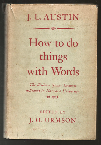 "In these examples [“I do”; “I name this ship the Queen Elizabeth”] it seems clear that to utter the sentence (in, of course, the appropriate circumstances) is not to describe my doing of what I should be said in so uttering to be doing or to state that I am doing it: it is to do it the issuing of the utterance is the performing of an action."