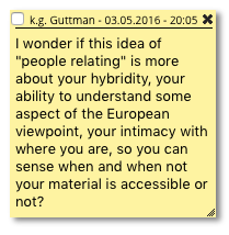 On this platform, the Research Catalogue, you the reader and me the initiator are meeting now for a chance to collaborate together. Our collaboration is towards creating together a performative research, where you can bring in your questions and observations to the content laid out here.