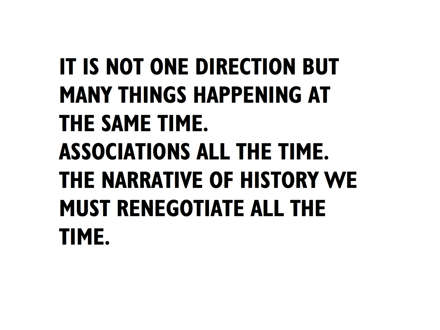 FOR ME THERE IS NOTHING AGAINST THE SUPER NARRATIVE. IF IT IS A GOOD NARRATIVE, I AM VERY PLEASED TO HEAR IT OR READ IT BEFORE THE PERFORMANCE. THERE ARE MANY WAYS TO GIVE THE AUDIENCE THE SETTING/CONTEXT. THEATRE IS QUITE A GOOD MEDIUM FOR IT. TO USE THE LANGUAGE. IN THE TRADITION OF THEATRE IT IS QUITE COMMON TO TELL A STORY TO YOUR AUDIENCE. THE LANGUAGE IS THE WHOLE DISCIPLINE OF THE THEATRE. ART SCHOOLS ADVOCATE TO BE COMPLICATED AND VAGUE IN LANGUAGE. BUT THEATRE GIVES THE SPACE FOR STORYTELLING AND THERE IS NOTHING WRONG ABOUT TELLING STORIES. DON’T PUT THE STORY IN A STRANGE BOX SO THAT NO ONE CAN HEAR IT.