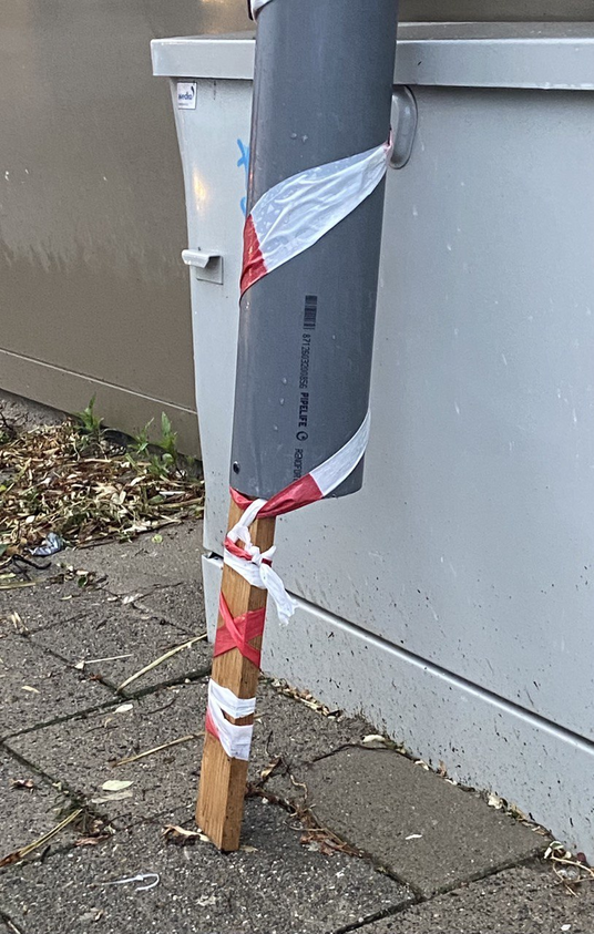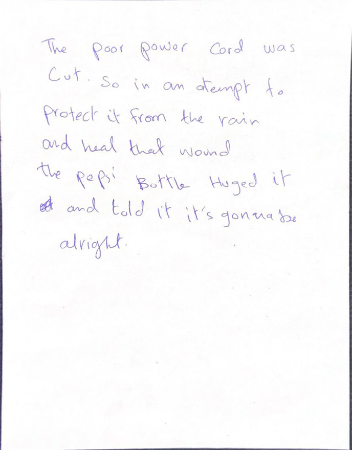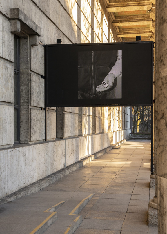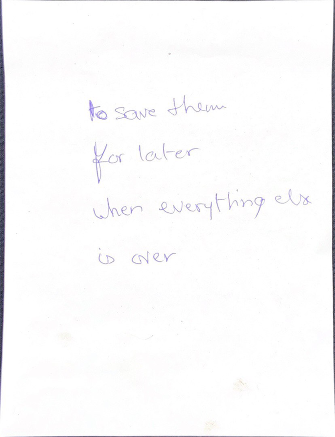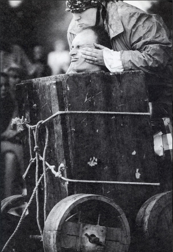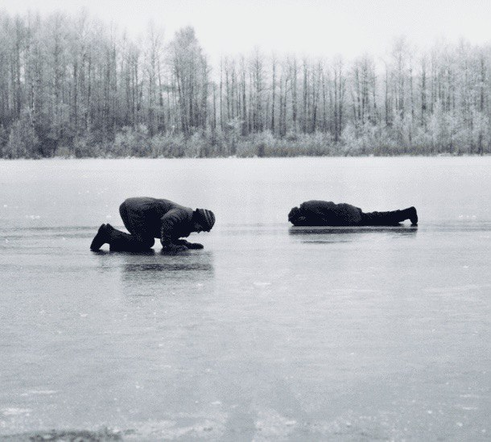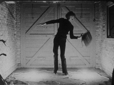 takes place in what appears to be a garage lit by two lightbulbs on the floor. Ader stands behind a large rock. He tries to lift it above his head; he fails and it crushes one of the bulbs. He half-disappears in the darkness. He tries again, and again drops it, crushing the other bulb. The whole process appears as one of self-erasure