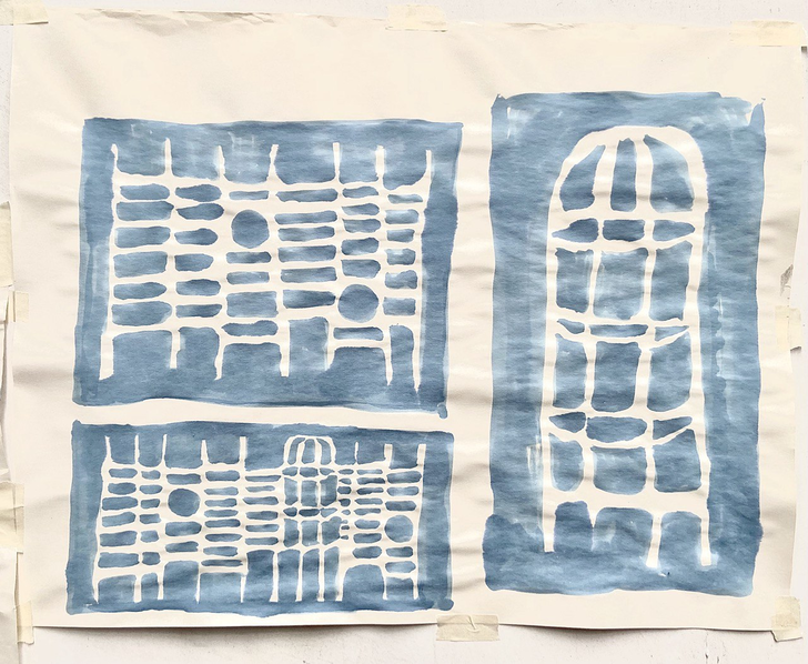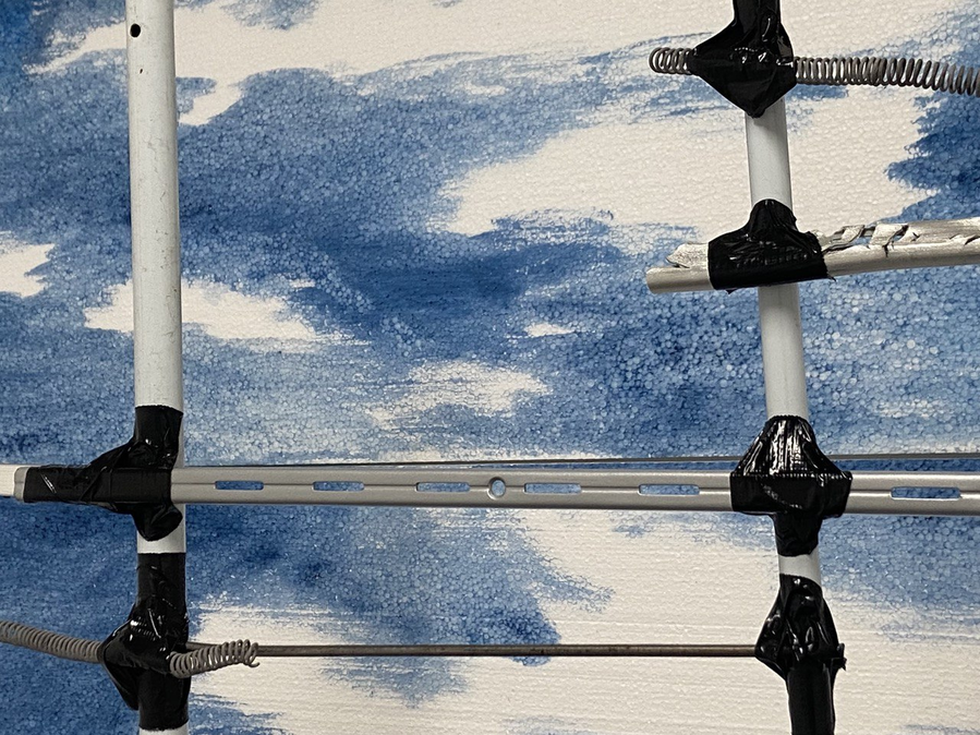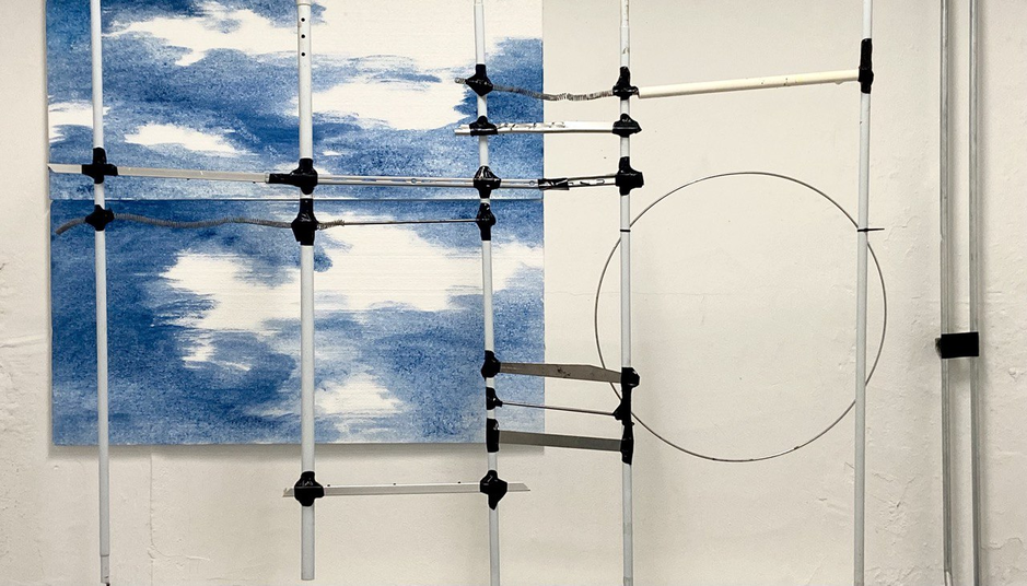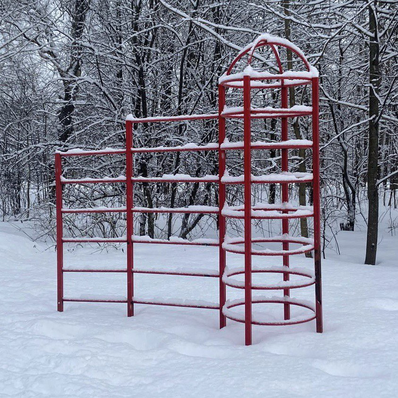 ВП: У Розалинды Краусс, замечательного американского критика, есть тема решетки. Она говорит, что эта тема в западно-европейской культуре это предел состояний. А в России решетка это как некое пред-состояние. Жизнь начинается за решеткой. А эта? (указывает на свисающую с потолка решетку из дощечек.