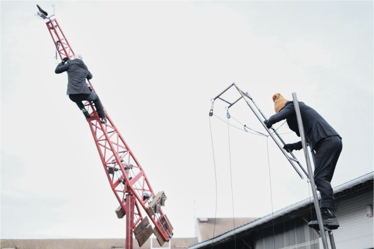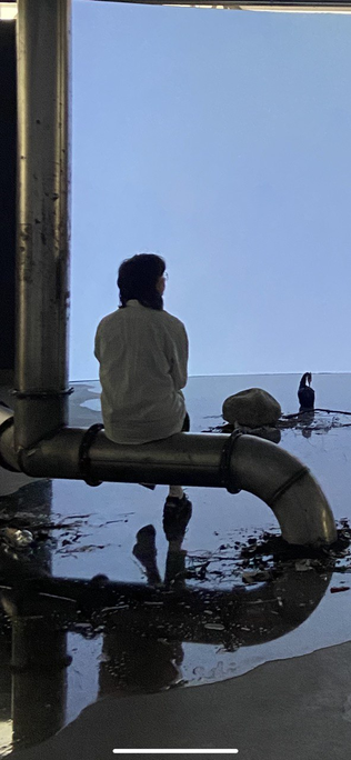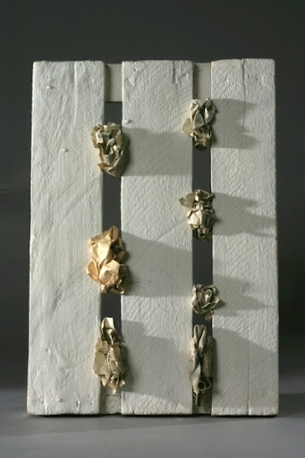 ВП: У Розалинды Краусс, замечательного американского критика, есть тема решетки. Она говорит, что эта тема в западно-европейской культуре это предел состояний. А в России решетка это как некое пред-состояние. Жизнь начинается за решеткой. А эта? (указывает на свисающую с потолка решетку из дощечек.