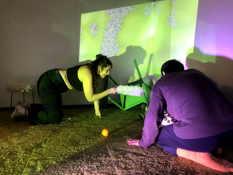 The moving images extended from the screen to every corner of the room, guiding the participant's attention to travel around the space.