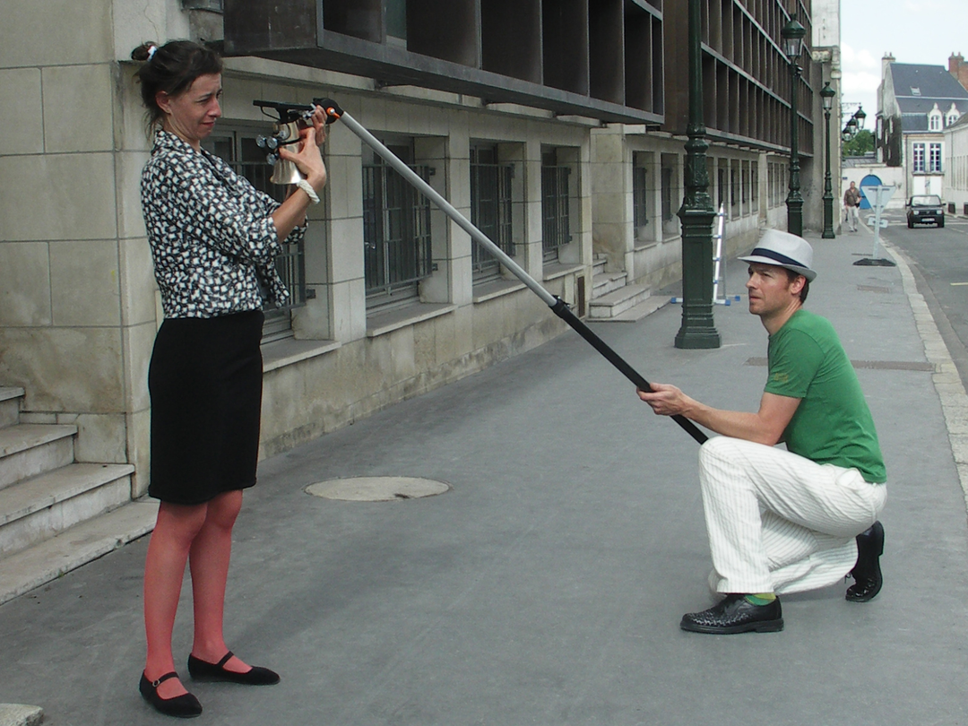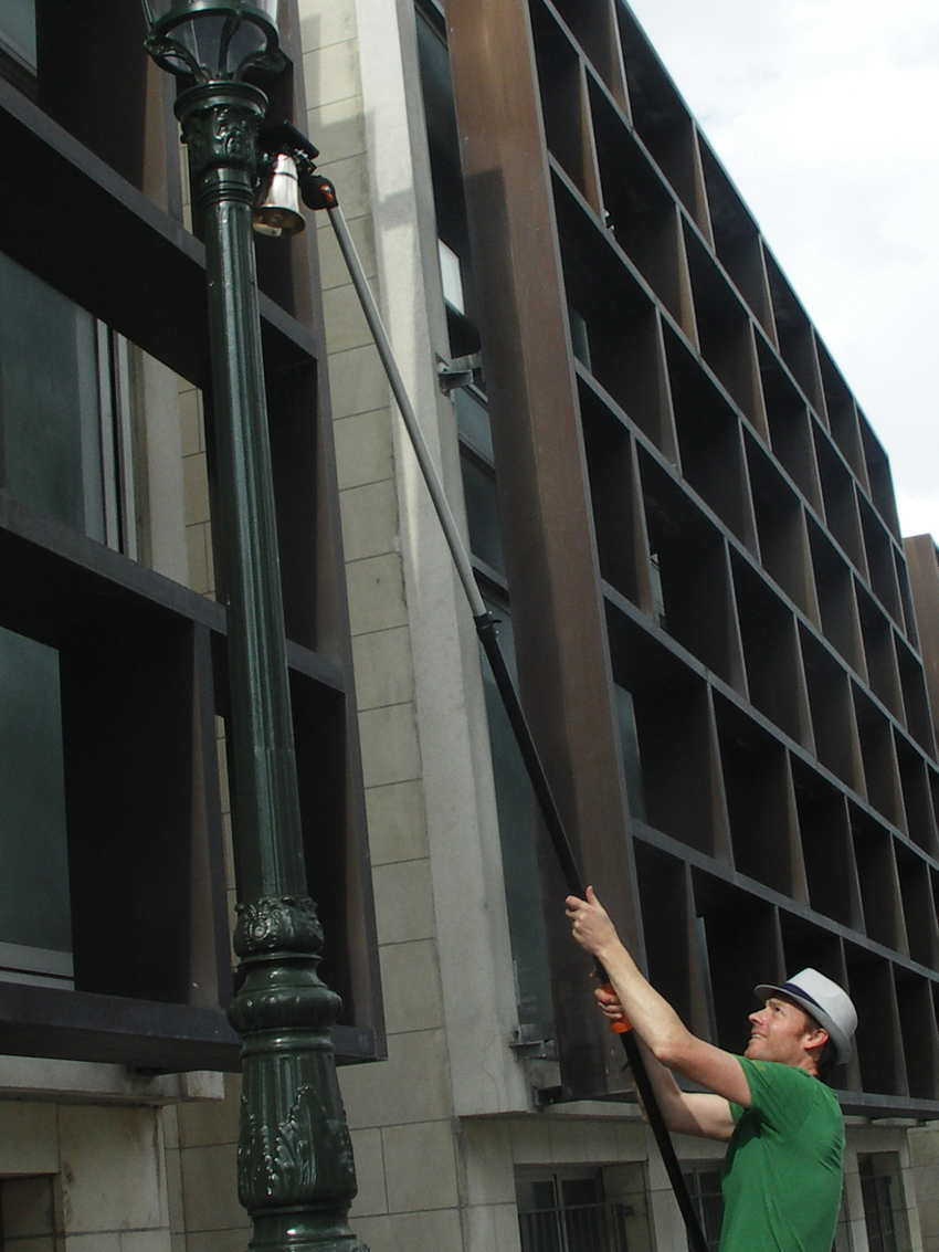 Figure 10. ParaSites: Antibodies (2012). Attaching of ‘antibody’ to customised pole for hanging at height.