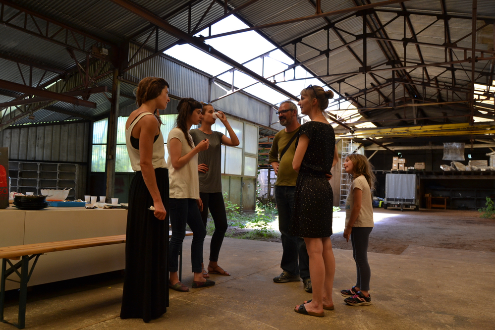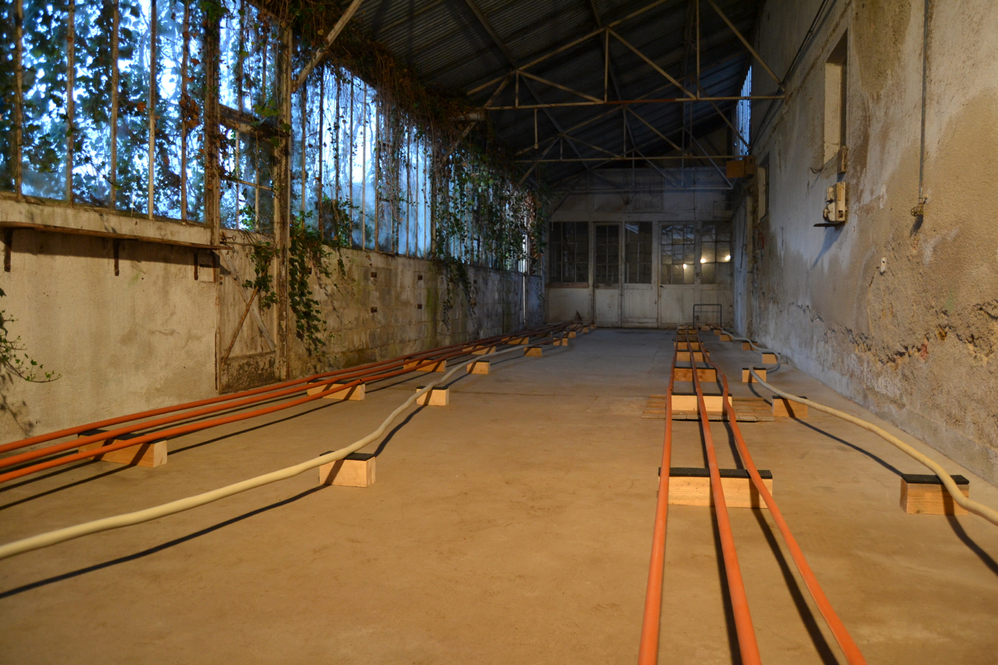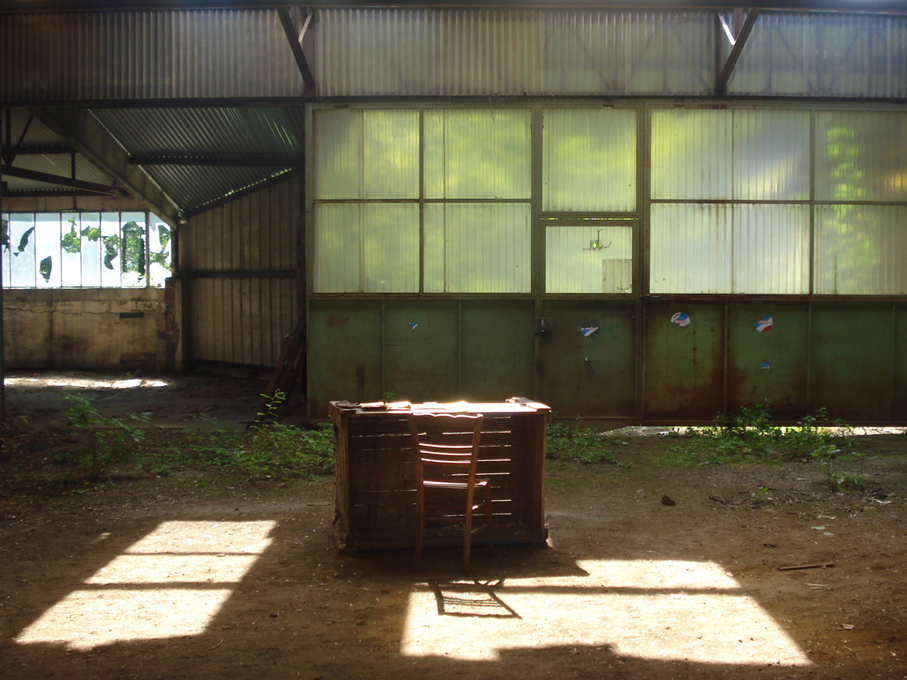 Since July 2014, we have been developing a site for ‘endangered’ artworks situated at the geographical centre of France, in Cosne-d’Allier. Here, a dilapidated industrial site – formerly used for the manufacture of agricultural trailers – stretches alongside the river l’Œil (lit., the eye) and offers almost 3000m2 of different spaces: self-contained rooms, large halls, an attic, covered outdoor spaces, and green spaces.
