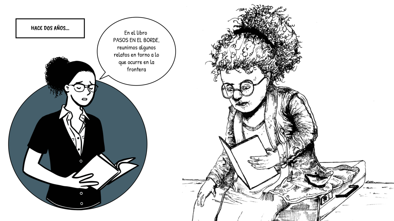 Después de vivir dos años en Colombia, he regresado a Venezuela para terminar estudios de pregrado y cuando retorno surgieron algunas preguntas y estas preguntas intenté resolverlas de manera creativa y bueno, otras preguntas siguen sin respuesta, pero me llevan a investigar y estas investigaciones pues a veces tienen derivas, derivas creativas, derivas plásticas, derivas sonoras y bueno, una de esas investigaciones es Los que cargan que como digo comienza formalmente con esta crónica que está incluida en Pasos en el Borde quizás antes de Pasos en el Borde yo ya venía reflexionando sobre esto desde que empecé a trabajar trasladando libros en frontera antes de emigrar y bueno, ya luego cuando voy a vivir a Bogotá con el trabajo de los recicladores y de estos artefactos de carga, las zorras en particular me parecían que también eran como una suerte de galería móvil porque muchas de ellas estaban intervenidas entonces pensando en esto, en estos artefactos de carga, en el cuerpo como este también artefacto de carga regreso a Venezuela y comienzo a hacer algunos clips, fotografías de los lomotaxistas y sobre todo me centré en los objetos y en el sonido de los objetos entonces empecé a hacer una serie de fotografías para establecer como una taxonomía de los diferentes objetos de carga y dos años después, a ver, dos, tres años después hacen una convocatoria sobre fotografía documental, el Get Institute y yo participo con estas fotografías y quedo seleccionada y hace un par de meses esta fotografía fue parte de una muestra que se llamó Ojo Pelado Edición Frontera y bueno, creo que he podido ampliar desde Pasos en el Borde he podido ampliar esta investigación y hace digamos un par de semanas hace quince días culminé otro proceso formativo que se llamó Narrar Fronteras impulsado por la red de periodistas venezolanas y bueno, allí pude hablar un poco de mi proceso de investigación con los que cargan de cómo comienza y bueno, una de las, digamos, de los factores importantes que incidieron en que me eligieran para formar parte de este grupo de Narrar Fronteras fue haber participado en este laboratorio de narrativa gráfica sobre frontera entonces bueno, algunos colegas, artistas, periodistas venezolanas conocen el trabajo de Pasos en el Borde y de hecho hay un par de investigadores tachirenses que tienen trabajo sobre frontera Carmen Ludene y Ender Rodríguez, ellos son dos artistas con los que he compartido el texto y que les ha servido para sus propias investigaciones y bueno, creo que es un libro con el que he podido, eso, abrir diálogos y que ha servido también como una plataforma para seguir indagando sobre el tema de fronteras, movilidad y como también para observarme como dije hace rato, como parte de un flujo de constante movimiento que somos los seres humanos