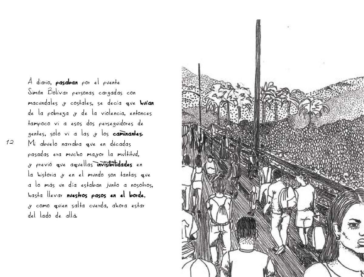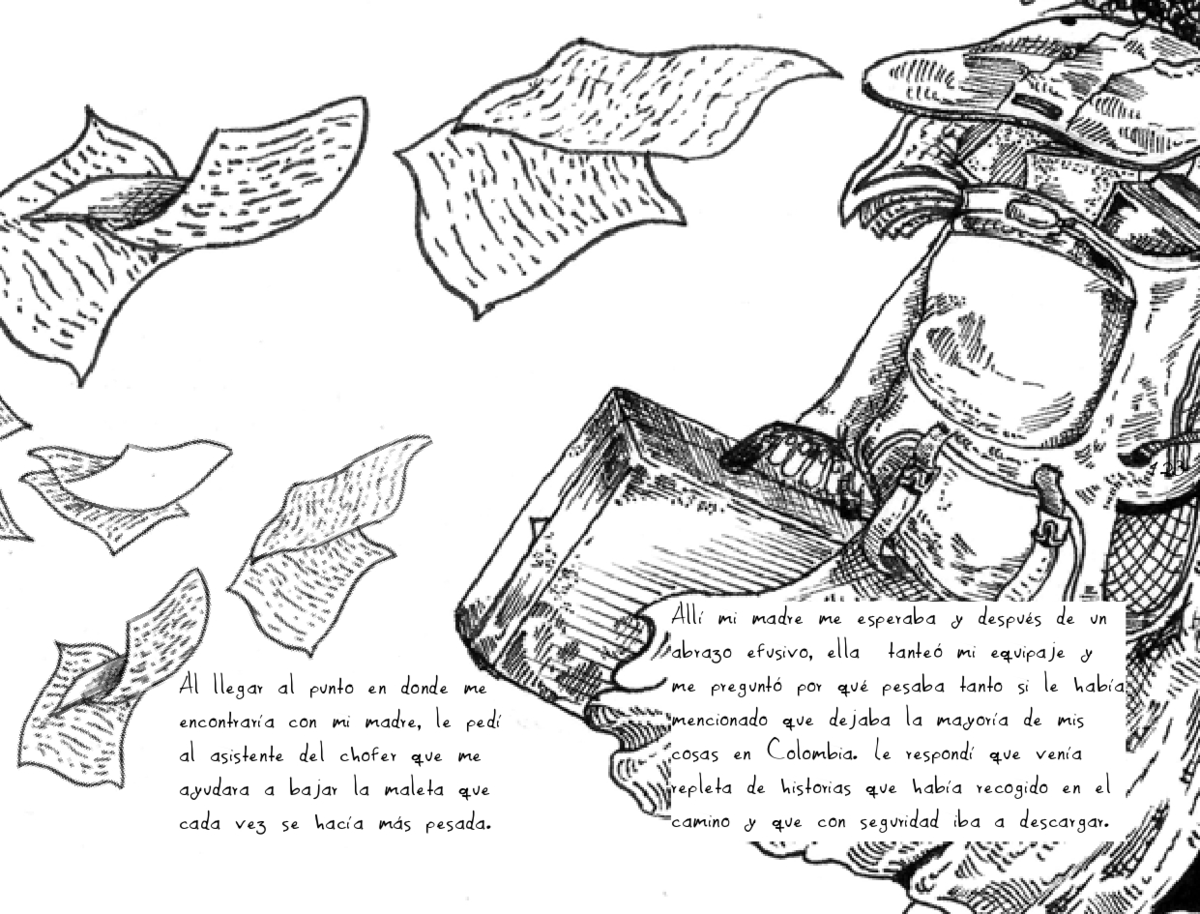 Esta web es producto digital del proyecto Narración gráfica, laboratorio de objetos, cartografía digital y mediaciones en experiencias con comunidades de artistas migrantes, registrado con Cód. 10160180521 proyecto institucionalizado sin financiamiento del Centro de Investigaciones y Desarrollo Científico - CIDC de la Universidad Distrital Francisco José de Caldas. Hace parte del proceso metodológico de desarrollo de la tesis doctoral Narración Gráfica de Experiencias: Intercambios en Imágenes de migración. Con la realización del proyecto, se busca incentivar el uso de la narración gráfica como proceso horizontal que permite relatar y revisar la importancia que tienen las prácticas artísticas de las comunidades en la construcción de tejido social. La propuesta de mediación artística se visibiliza como una estrategia colaborativa que permite el diálogo y el intercambio. El trabajo se inscribe y contribuye a las apuestas del Grupo de investigación para la creación artística y de la Línea de investigación en: Estudios críticos de las corporeidades, las sensibilidades y las performatividades. Adscritos al doctorado en estudios artísticos de la Universidad Distrital Francisco José de Caldas.