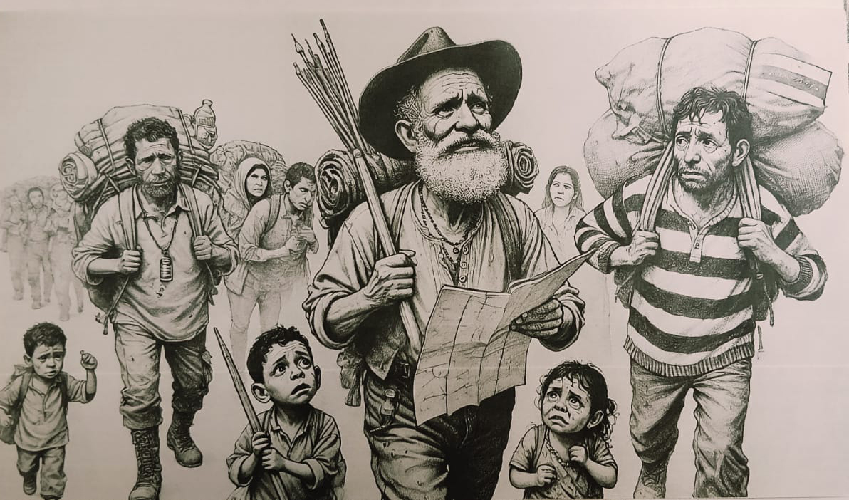 A partir de los personajes que emergen en las experiencias de las persons que migran se recrean teatralidades escenas que suman lo emocional, las cargas, el peso de los cuerpos, los gestos, la narratografía se aplica ahora como una forma de pensar la construcción de imagenes desde los elementos previamente encontrados