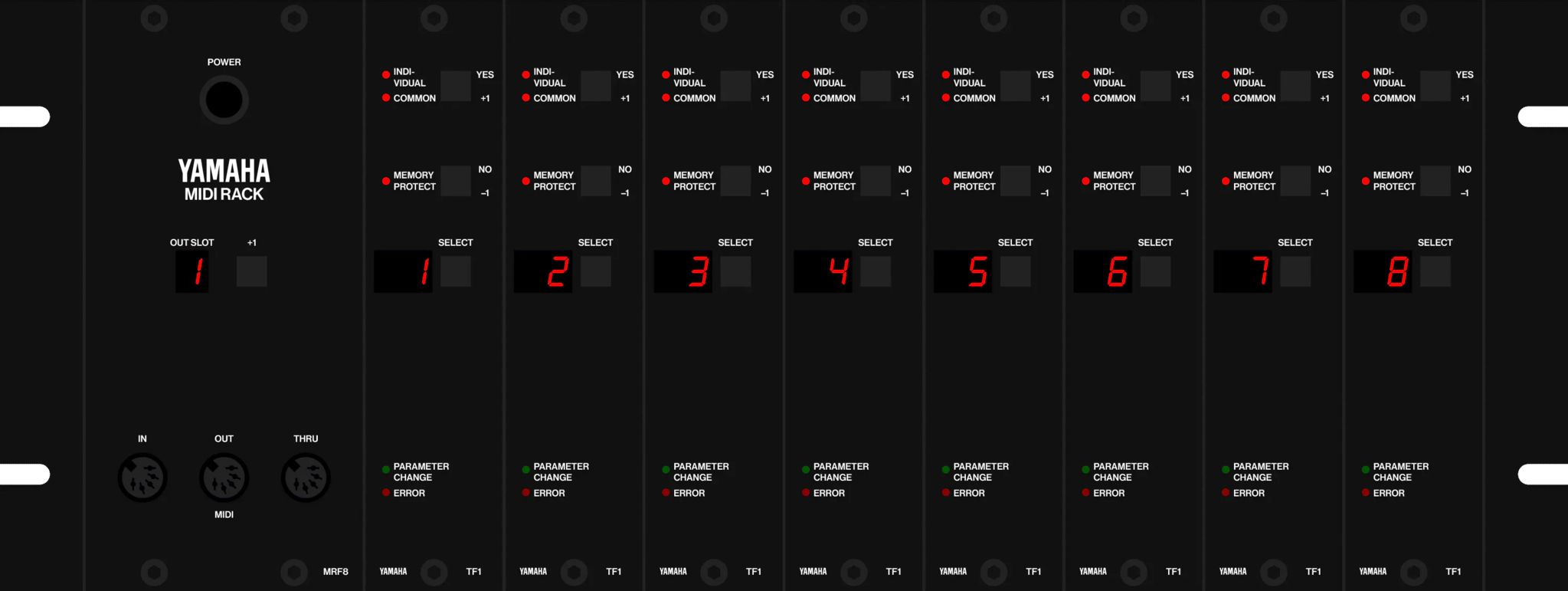A myriad of special randomized parameters were incorporated, particularly because all sysex messages could be sent while the instrument was playing—without any digital noise. The TX-816 was produced a year after the DX-7, and it seems the MIDI implementation had already been improved.