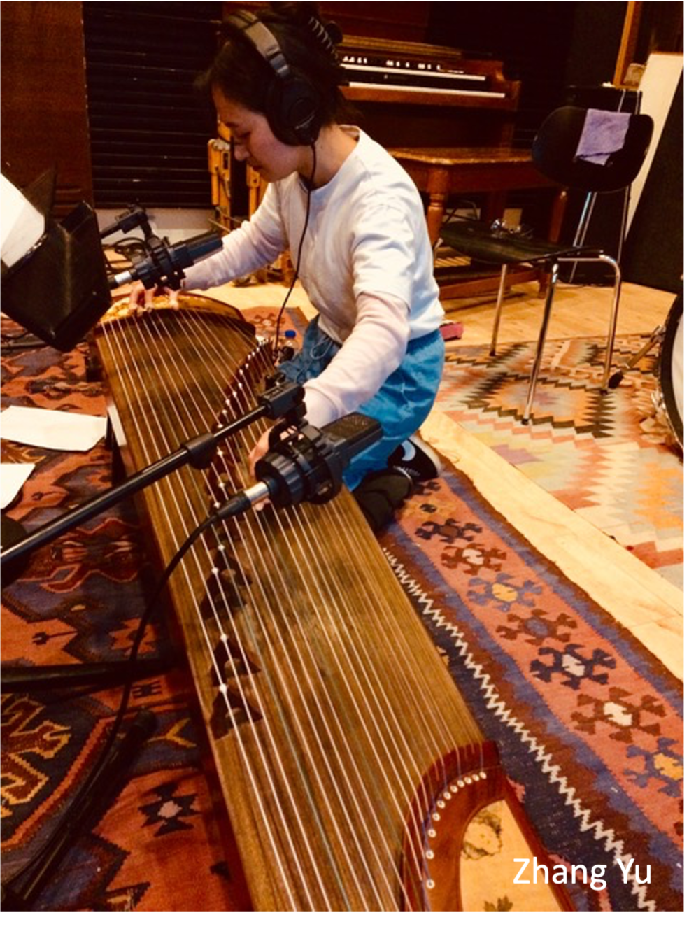 We recorded the guzheng for several movements, but it was only in movement X9 that the blend of this acoustic and electronic instrumentation made sense. The recording took place in A-Studio at RMC, with Yu, who lives in Aarhus, bringing a special large concert guzheng for the occasion.