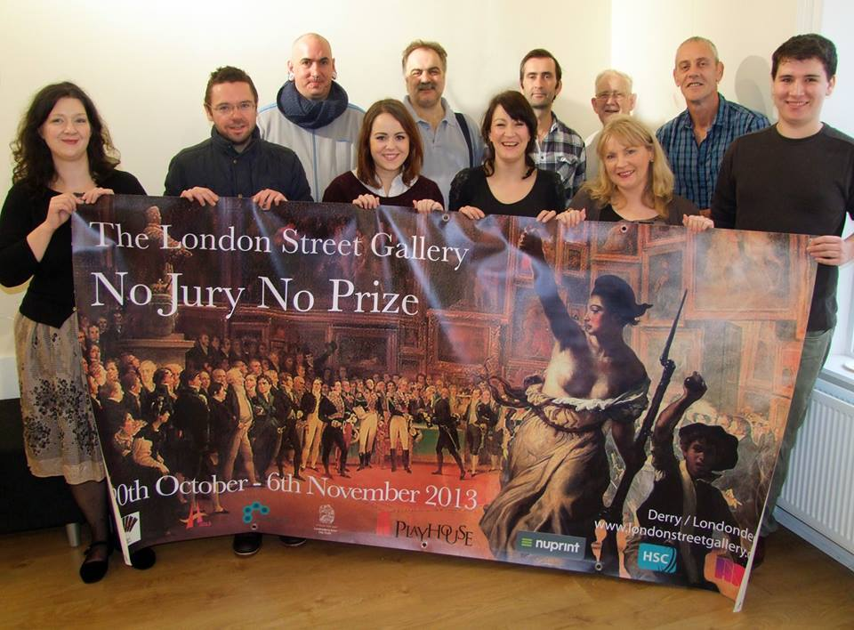 Whereas the postmodern art of the 1980s repeatedly negated the myth of the genius artist, the current tendency of exhibiting the unknown negates the artist myth. In doing so, it fits within the authorial tradition through its negation of a specific aspect of that tradition. In part, it is also an attempt to trouble the market – for what can be reified and commodified if everything is art and everyone an artist? In April of 2013, I curated an exhibition at the London Street Gallery in Derry titled emerge + see. It consisted of artwork by forty-nine local producers, some of whom had never exhibited before. In discussions with the gallery, I emphasised my desire to exhibit as many artists as we could. This outlook was motivated by both personal experiences and discussions with artist peers on the rigid selectivity that permeates contemporary art. The exclusivity in art engenders alienation and divisions within local art worlds that mirror divisions in wider society. This direct democratic experiment was developed later in the year when my research finally approached its practical realisation with the hosting of a No Jury, No Prize exhibition at the London Street Gallery. Running concurrently with and operating in part as a negation of the Turner Prize exhibition (which was being held in the city), the exhibition followed the logic of the Society of Independent Artists by including the work of everyone who submitted. In doing so, it sought to realise Joseph Beuys's infamous pronouncement, 'every human being is an artist' (Beuys 2002). During the exhibition (which consisted of work by almost three hundred exhibitors), we held an open floor symposium with Ken Neil and Francis McKee of the Glasgow School of Art, during which we discussed questions of ownership and control within society.