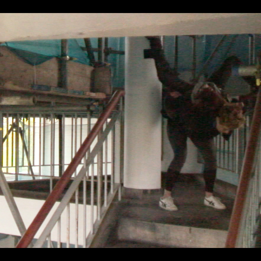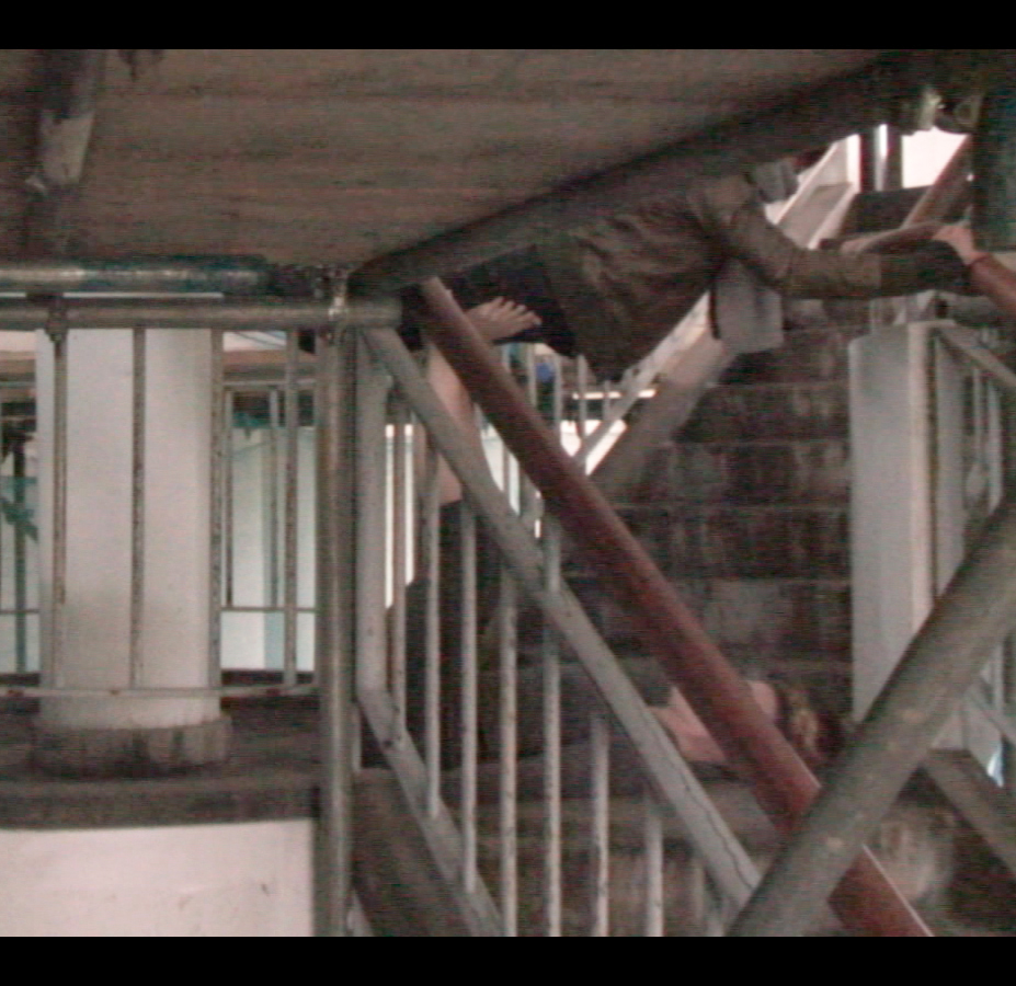 The photograph St Peter’s Seminary and the video Bevin Court and the Sivill House are simultaneously autonomous, completed artworks and experiments contributing to an ongoing artistic research methodology. Both works were created through movement intervention by the human body within architectural contexts. The generation of such works does not rely solely, or even mostly, on an intuitive response to site. Instead, a text-based research process concerning the building that includes the cultural circumstance at the time of construction, the motivations of its architect(s), the choice of materials, and so forth, precedes the intervention in an effort to fortify the creative process with a knowledge base that functions alongside more instinctive decision-making.