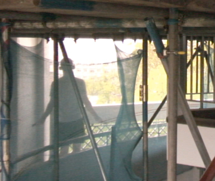 The video starts with a jump roper whose regular beat metres the time throughout the footage at Bevin Court. This resident emerged from a corridor of flats, arranged his laptop on the outward-facing ledge in a manner suggesting routine, and began jumping rope, all within the already-framed shot. His actions were entirely candid, with no knowledge of the movement intervention. The underdeterminacy of the communal stair's large volume in relation to the living spaces invites an overlap of actions. The layering of the rope jumping and the movement intervention becomes the artwork because the context of creation yields unforeseen results. At the Sivill House, the kaleidoscopic stair allows the physical arrangement of the same two female performers to be revealed at a deliberate pace. Furthermore, by offering no indication of the start or end of the architectural feature or of the performers’ ascent, the camera frame and movement phrase together suggest the infinite spiral of the stair. Through investigating such a dynamic architectural component situated within a building with an innocuous facade, movement intervention demonstrates its ability to approach certain finer points of a built space.
