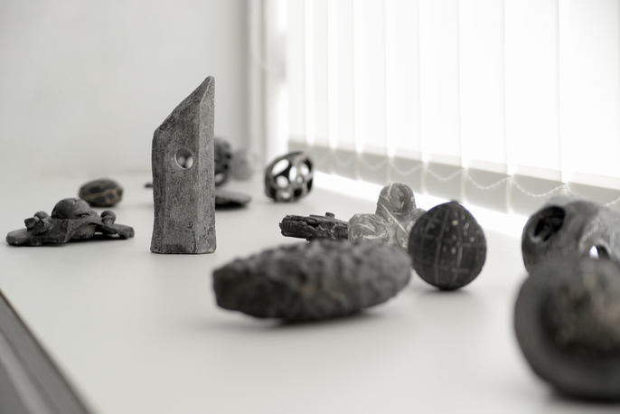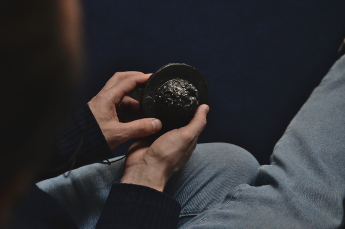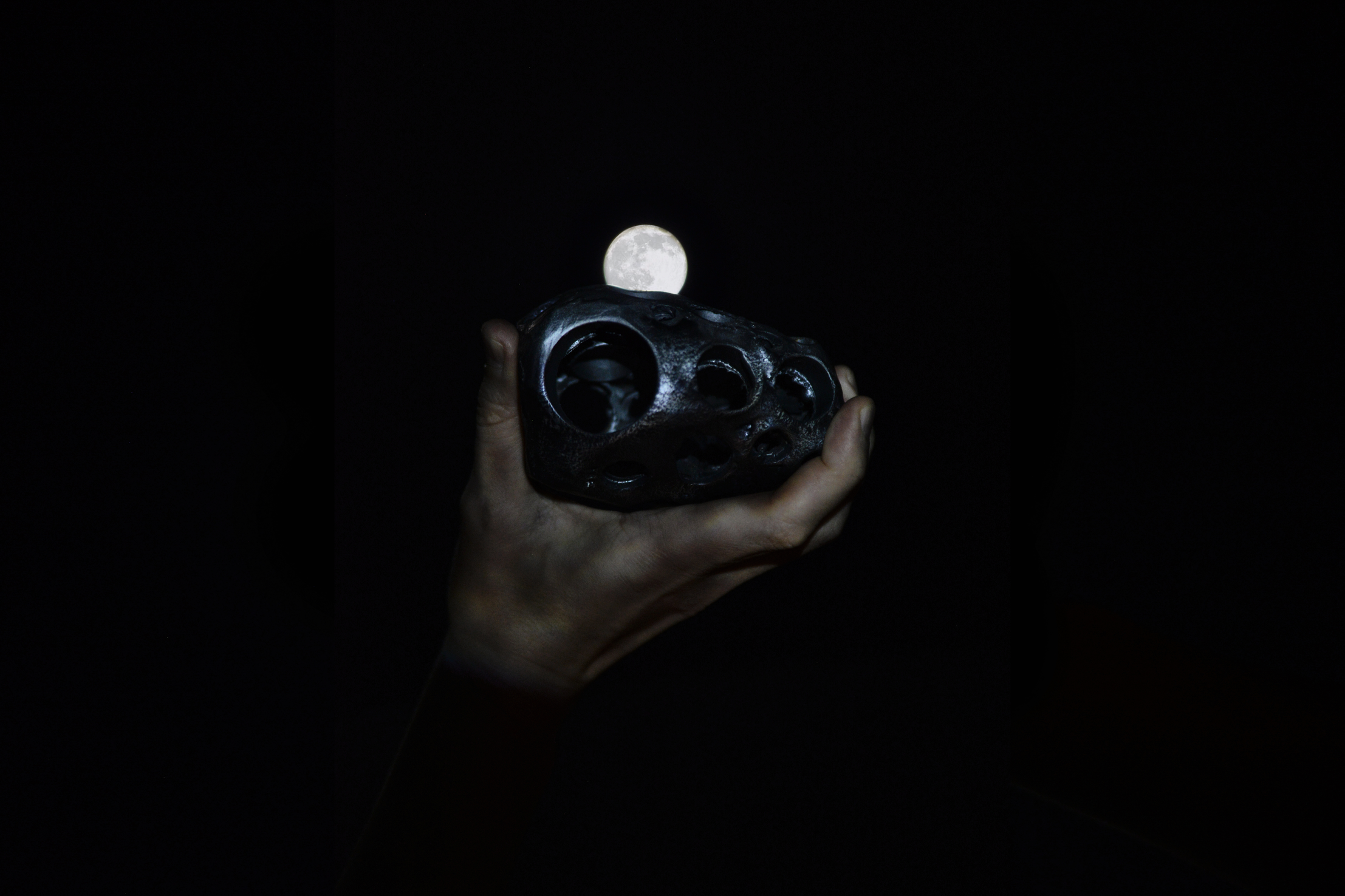 KOSMOSOMSOK is a participatory walking piece and installation that aims to bring space closer to the participant through an audio track, which includes a few simple tasks, and through sculptures created in dialogue with visual artist Thomas Westphal. The background material for the sculptures came from our discussions about blending high-tech devices with fossils, and imagining future-oriented, recognizable techno-fossils, objects whose purpose is unclear or ambiguous. You can see the sculptural objects in the images here.
