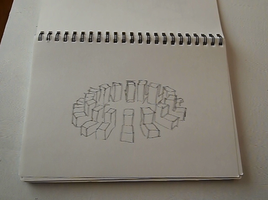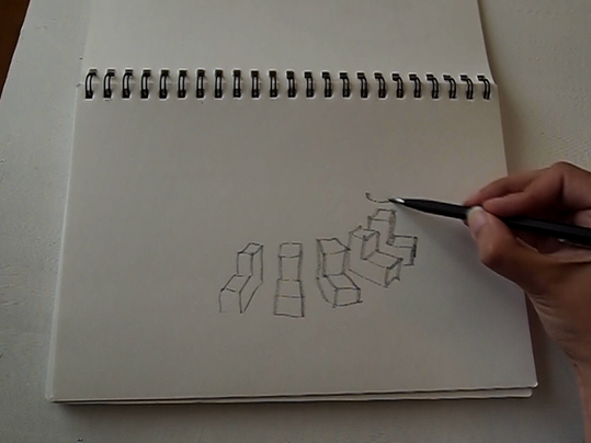 I have found this exercise useful at times when a sense of flatness overcomes my drawings and I feel I cannot adequately position shapes in space.