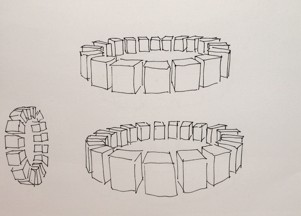 I have found this exercise useful at times when a sense of flatness overcomes my drawings and I feel I cannot adequately position shapes in space.