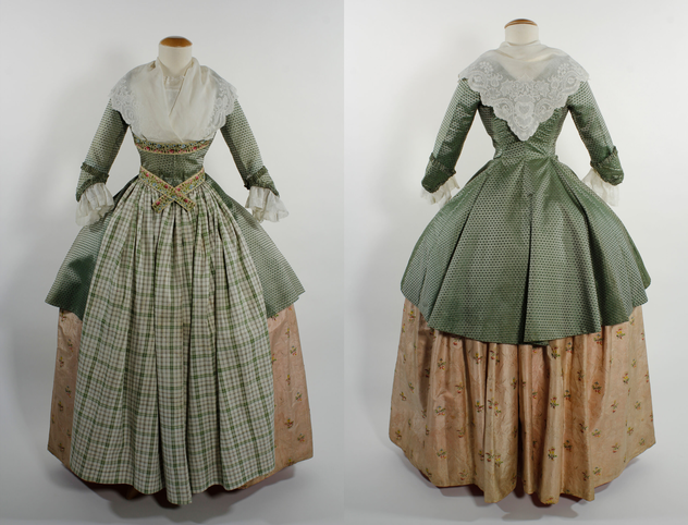 These colors and motifs were in line with the aesthetic sensibilities of the time, which emphasized grace, refinement, and gentility. Advancements in textile production and printing techniques made it easier to create intricate patterns and delicate shades, allowing for greater variety and experimentation in dress design.