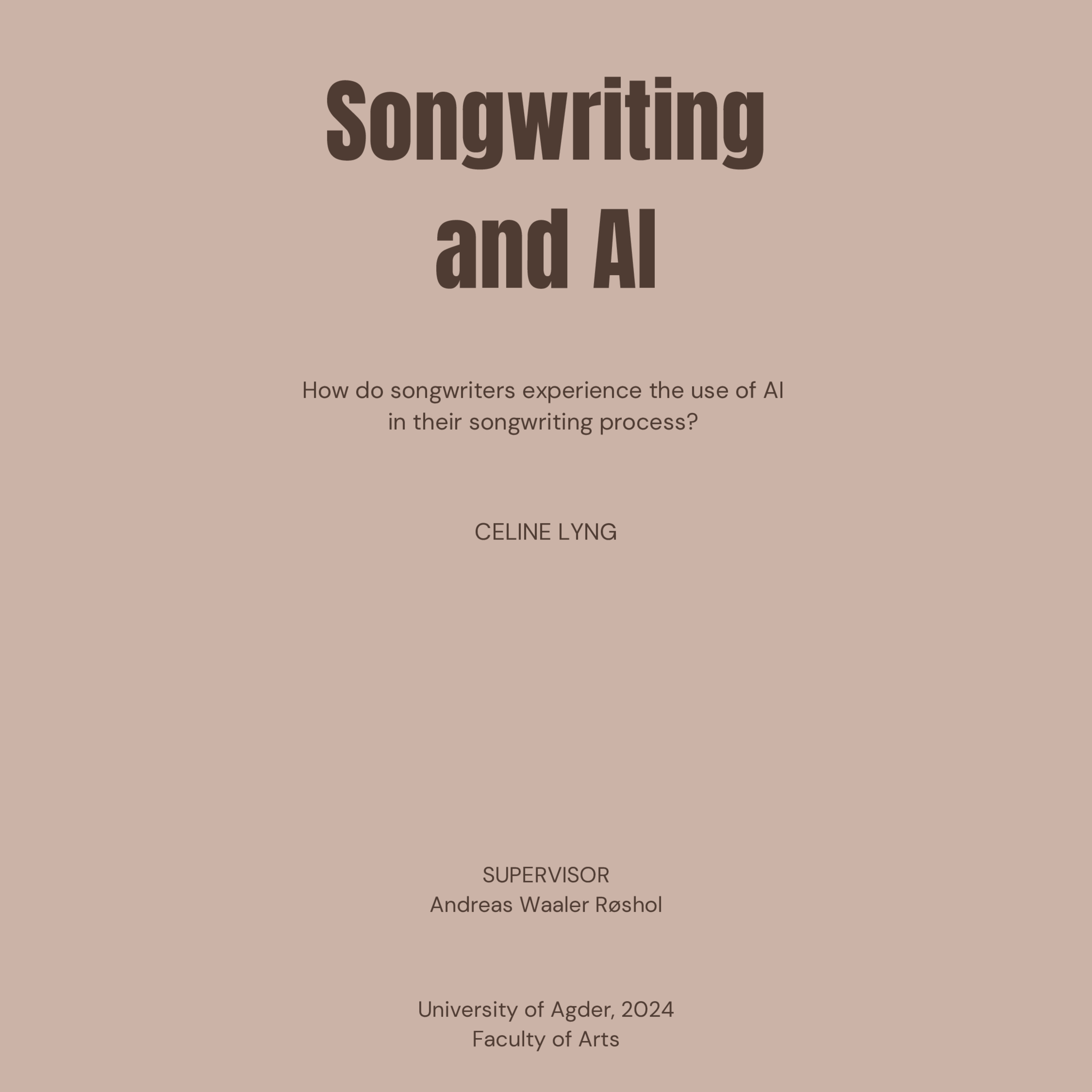 This thesis researches how songwriters experience using AI in their songwriting process. The artists will therefore participate in writing sessions, to experience creating songs with AI. To collect data, there will be held one interview with the artists before the writingsession, and one after they received a demo of their AI song. To write this thesis, I have had to make decisions and acknowledgements regarding limitations. These limitations are the number of participants and AIs, as well as the limitation of time and how easily creativity is affected.
