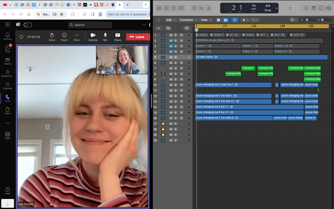 The session with Torfinn was different in the way that it was held in person, which allowed us to both contribute to using the software more equally. He was also more involved in the production. His guitar playing is his musical signature, and it was only natural that he recorded those parts himself.