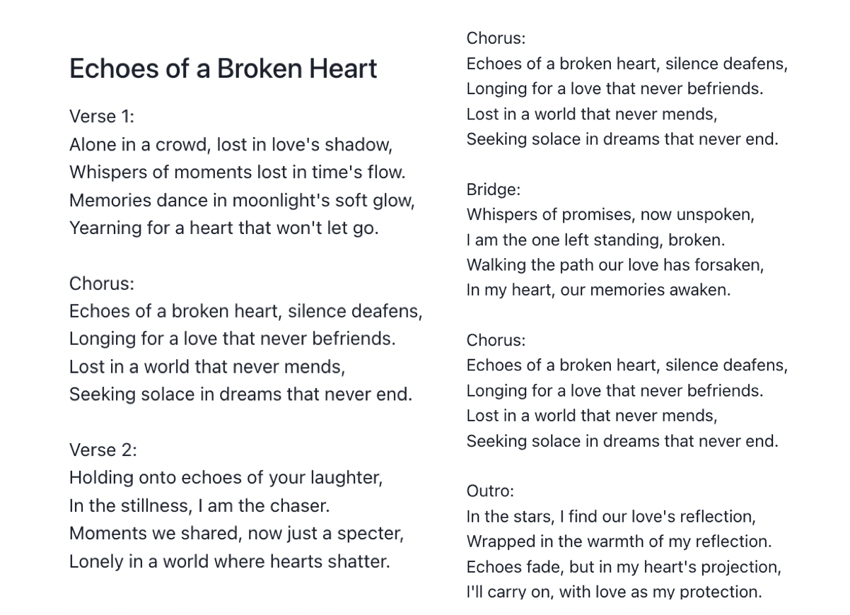 Figure 2: CLG generates a direct copy of already-released lyrics