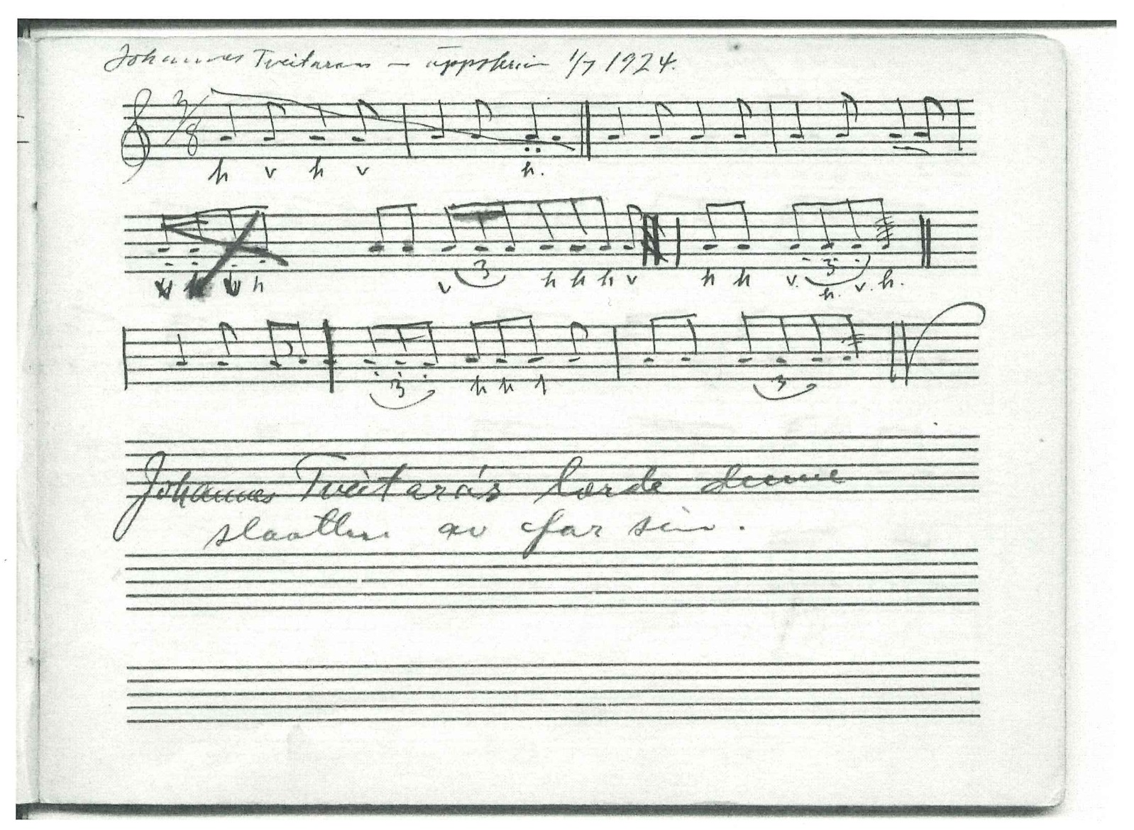 De to allabreve-slåttene jeg refererer til som vanskelige å tolke er de to følgende (J. Sundvor, u.å.k, s. 17 og 20). Jeg kaller de noen ganger for fedreslåttene siden begge slåttene har blitt lært bort fra en far til en sønn. Et forslag på åssen slåtten etter Tveitaraas kan spilles blei presentert i innledningskapitlet.