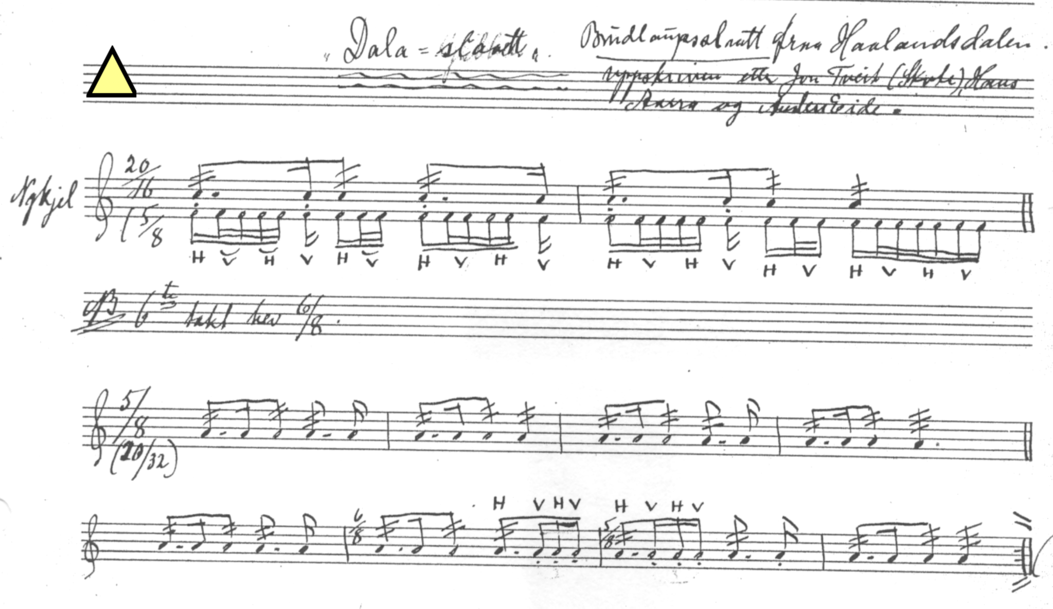I de noteheftene etter Johannes Sundvor jeg har hatt tilgang på finner jeg nykjel nevnt to ganger. Nøklene presenteres i heftet jeg har kalt Innføring i trommeslåtter og trommemarsjer (J. Sundvor, u.å.e, s. 3 og 11). I begge tilfeller er nøklene identiske med første linje i slåtten på samme side, men med en mer detaljert notasjon under melodien, som viser det nøyaktige antallet dobbeltslag eller virvelslag. Dette ligner på det doble notesystemet Carl Haakon Waadeland bruker som pedagogisk verktøy i sin lærebok (Waadeland, 1991). Hovedforskjellen mellom Sundvors og Waadelands nøkler er at Sundvors nøkler er lengre.