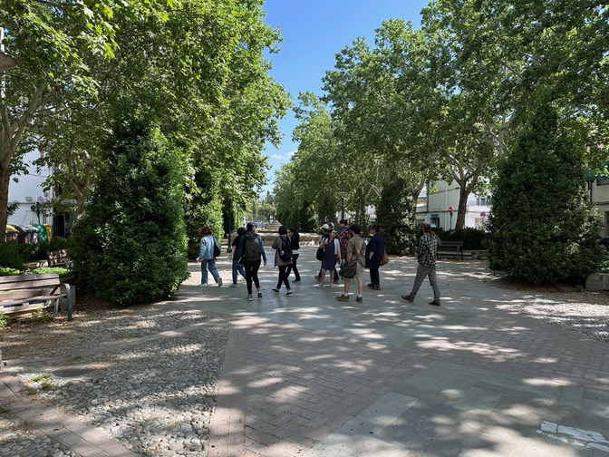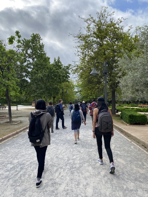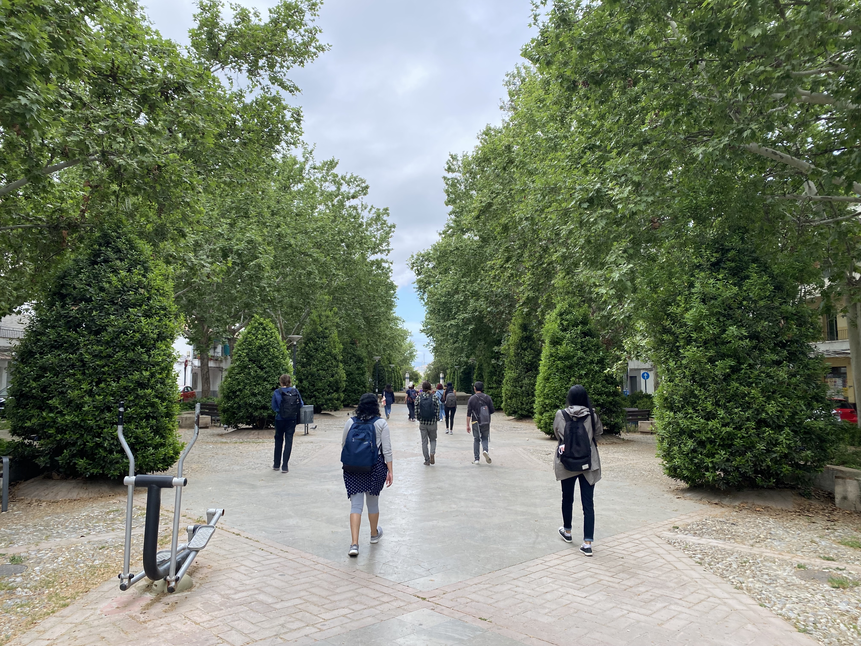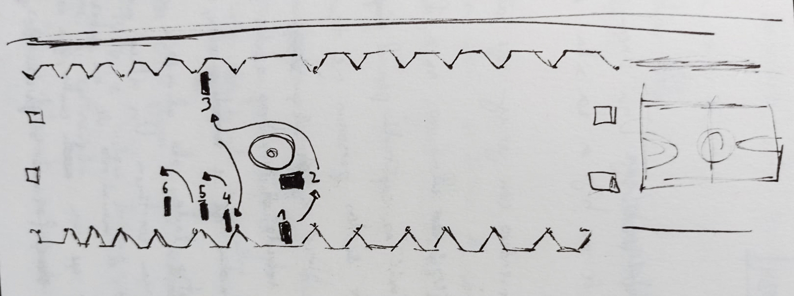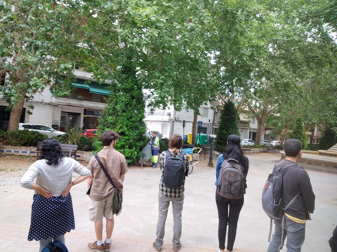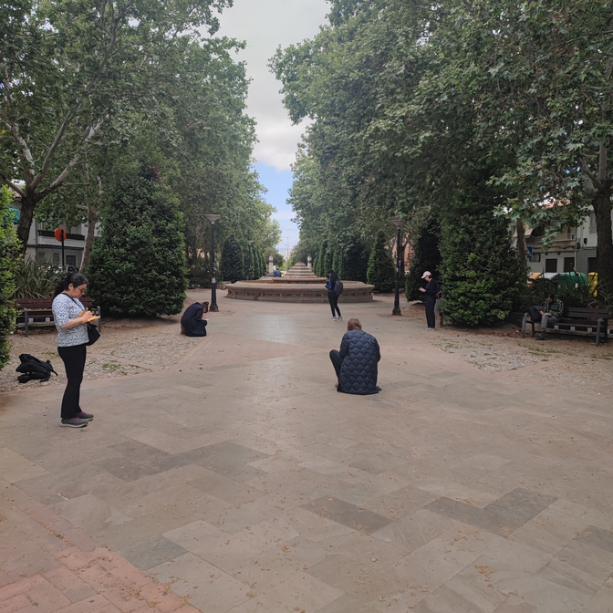 Aim/Intention: to activate an interval or transition, through moving together in space, but also a movement of attention. Attending to the silence of being-together whilst observing and listening to the surrounding sounds. Noticing rhythms and shifts in pace.
