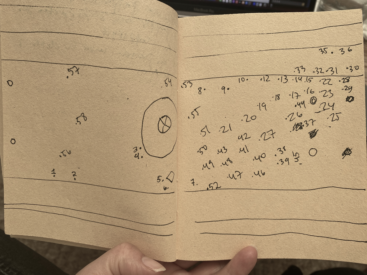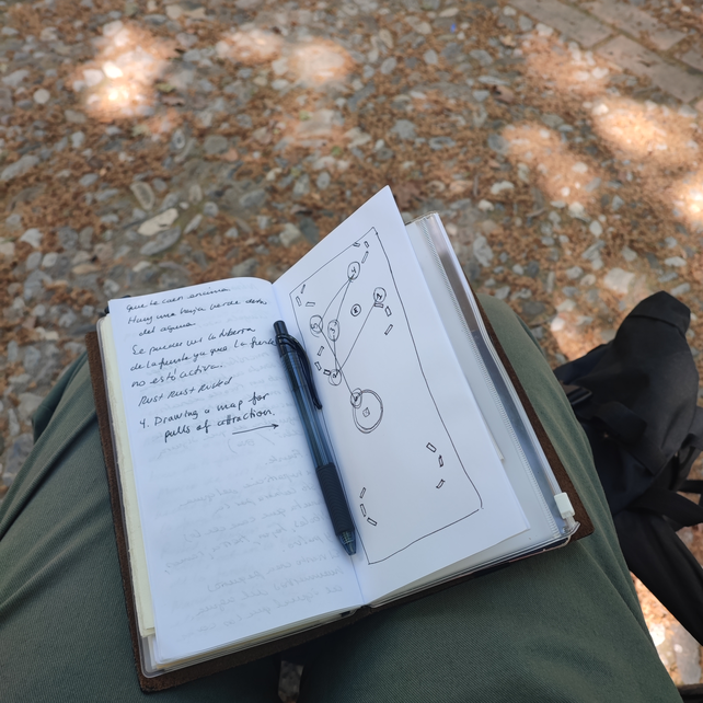 Notice the edges, allow for peripheral vision – an open gaze. When something catches your attention, move towards that, begin to write. At some point, open your attention to a wider field, when something catches your attention, move towards that, begin to write.