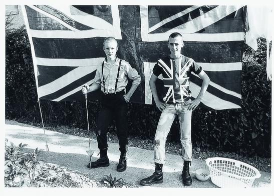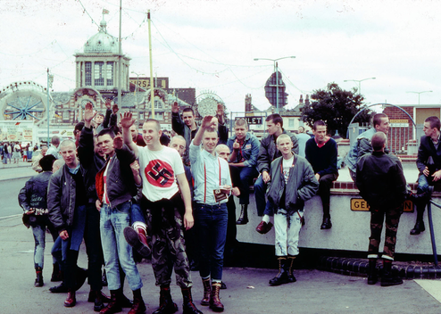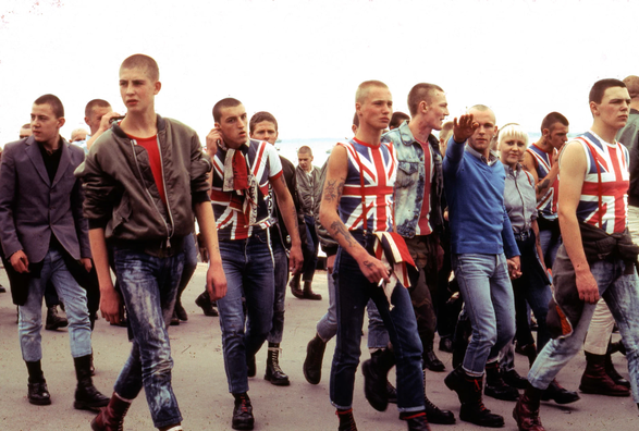 1980s Britain was convulsed by a social and political revolution, the Skinhead movement attributes this to the Nationalist ideology that swept the subculture. Born from the fusion of the cross-pollination between the white working class and Caribbean immigrants, the Skinhead movement originated in the working-class neighbourhoods of London. The youth culture was characterised by hostile hair and dress style, tightly shaved heads and combat boots. During the period of mass immigration and unemployment within the United Kingdom there was a rise of nationalism within a sub-section of the Skinhead movement. Far right groups recruited white Skinheads, their image/movement quickly became equated with racism. The ‘aggressive’ uniform, previously credited to their working class background, transformed into a symbol of violence.