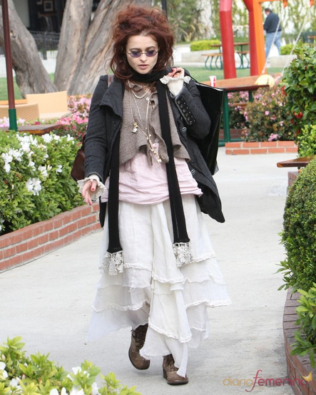 Celebrities are often photographed in public and you can see their personal style. One of the most uniquely dressed celebrities is the actress Helena Bonham Carter. She is often photographed wearing a lot of layered clothes including layered skirts with different lengths and colours and sweaters worn over eachother. Not only does she wear this on her own she also wears a lot of layers to red carpets, e.g. layered what seemed to be two bras under a skirt showing the layers or a dress with differently draped fabrics and clours creating the effect of four different layers. Helena Bonham Carter also plays around with many different prints and patterns layered over each other. She is probably one of the celebrities with the most unique style and she has been seen even dressing her daughter similarly.