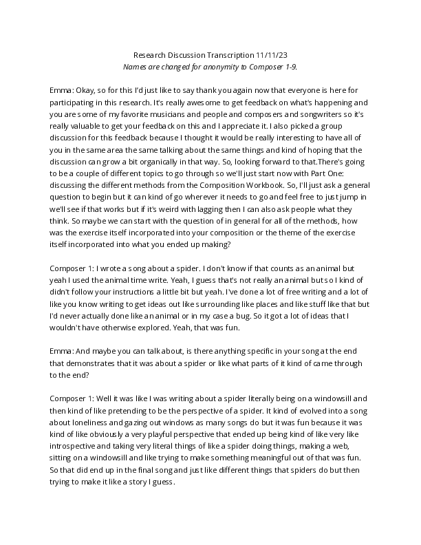 When starting a composition, waiting for the fabled “inspiration to hit” can be unreliable at best and frustrating at worst. To investigate this issue, I look at how experts in other art disciplines approach the practice of creativity, specifically when beginning a new project, which, in composition, equates to starting a new piece. This paper explores how encounters with six creativity exercises originating from the disciplines of writing, choreography, and visual art can result in new possible approaches to jazz composition. The approaches explored include a Daily Method from author Julia Cameron, an Animal Method from poet Ted Hughes, a Haiku Method from authors Linda Anderson and Derek Neale, an Improvisational Method from choreographer Twyla Tharp, a Habit Method from choreographer Jonathan Burrows, and a Modeling Method from visual artist Austin Kleon. Throughout my research, I tested these six methods in my compositional practice and recorded the musical outcomes. I then shared three methods with musical colleagues to try before collecting their thoughts. In each method, I will recount my writing process using the method, my journal entries, and my overall thoughts. In the animal, haiku, and improvisation methods, I will also compare this to the experience of my colleagues. Each section will conclude with a musical work created from the method and my own evaluation of the resulting composition. The research demonstrates viable conceptual strategies for approaching jazz composition derived from other art disciplines and suggests that creative practice can be both accessible and sustainable over the long term.