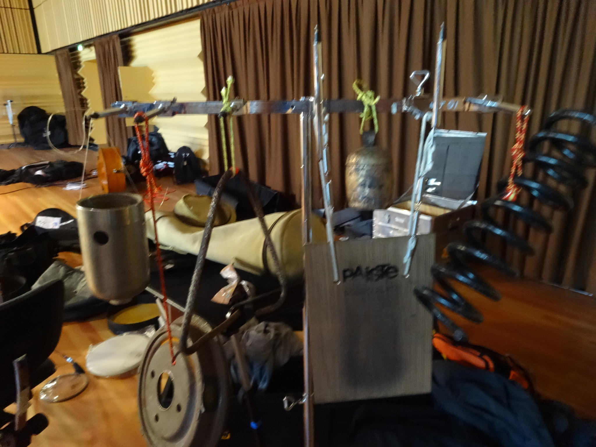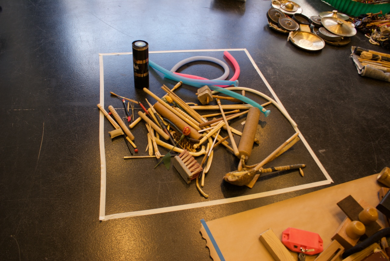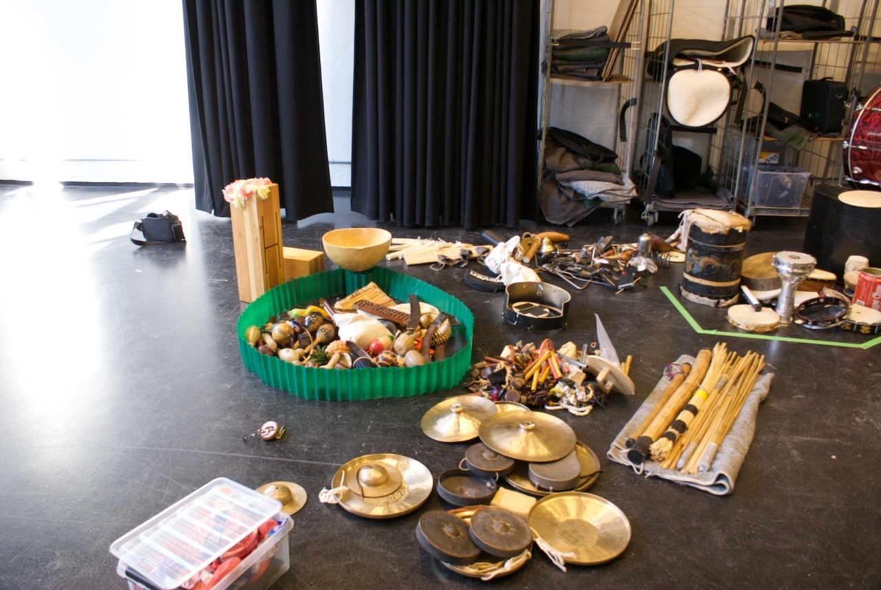 In this workshop the nominated audience of amatuer musicians were invited into a discussion about the crafting or selecting of sounds, and instruments. They also brought their own "gifts" of objects that had interesting sound qualities. The ritual of waiting to enter, entering, sitting and experiencing the performance was also broken down in order for the audience to reflect on the this process.