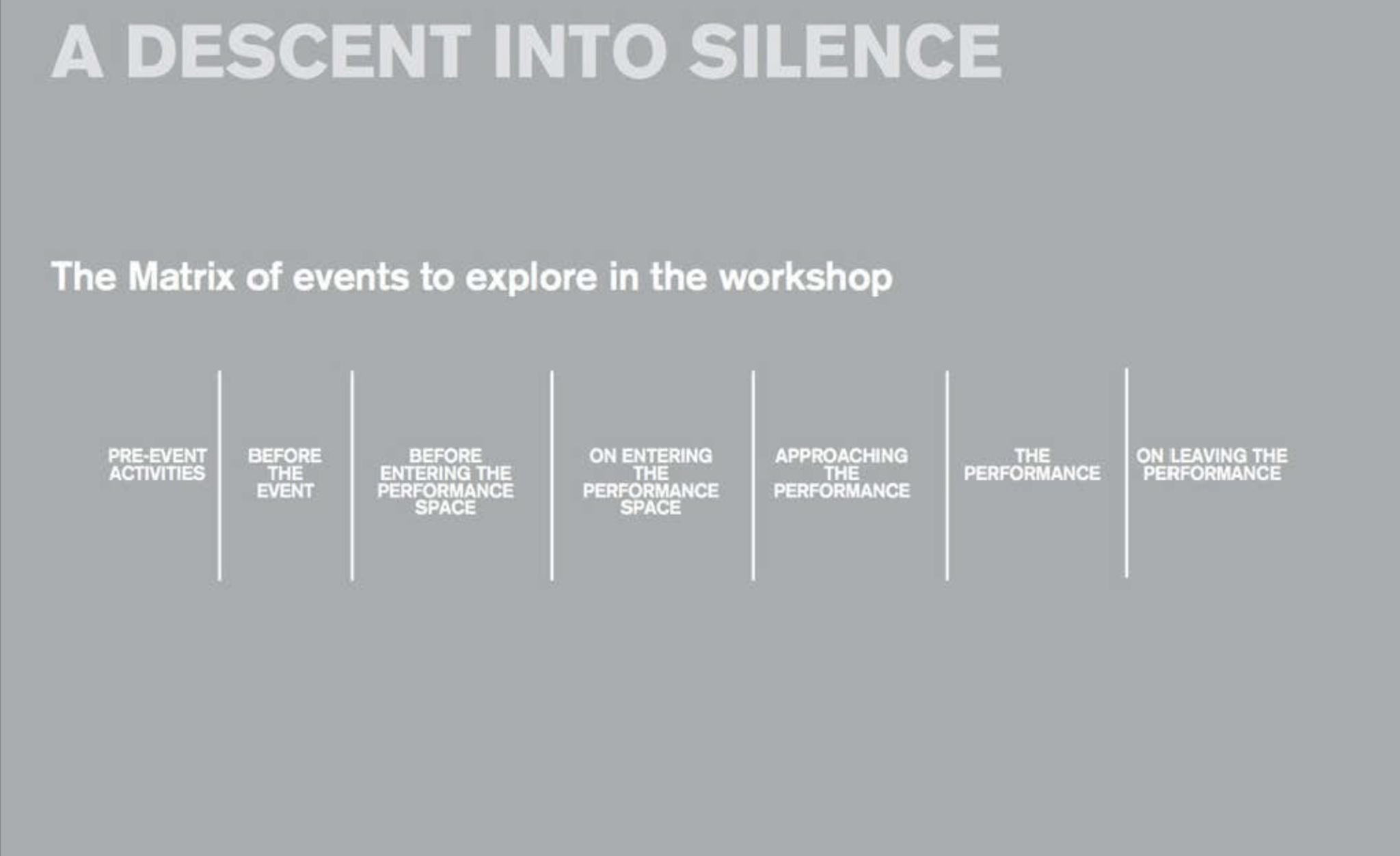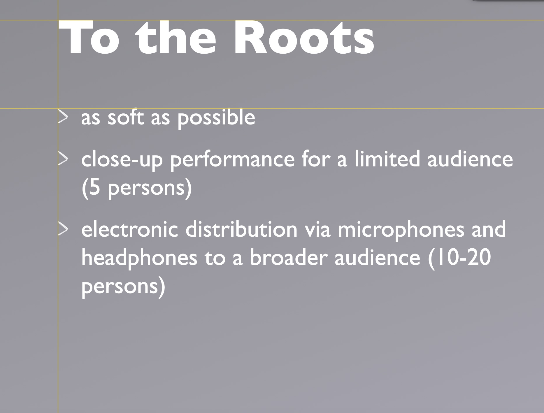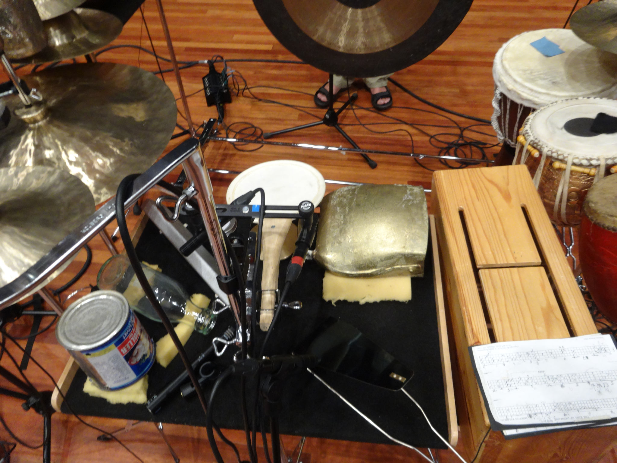 In this workshop the nominated audience of amatuer musicians were invited into a discussion about the crafting or selecting of sounds, and instruments. They also brought their own "gifts" of objects that had interesting sound qualities. The ritual of waiting to enter, entering, sitting and experiencing the performance was also broken down in order for the audience to reflect on the this process.