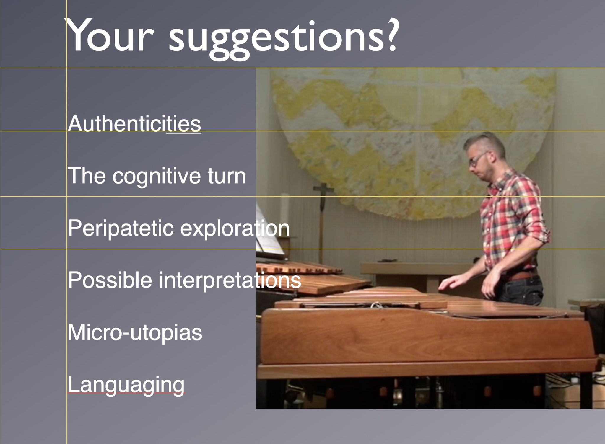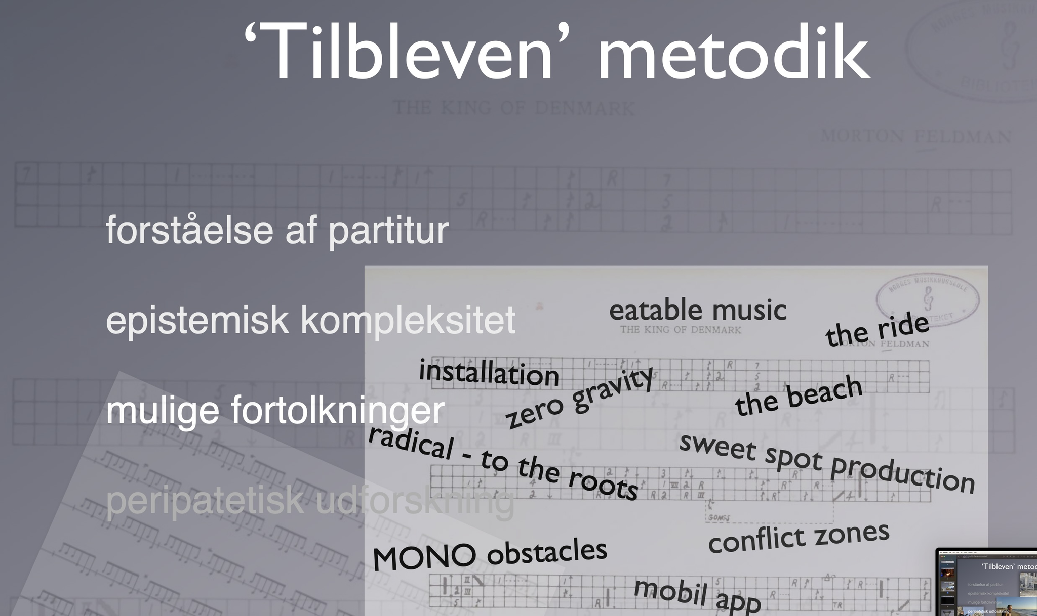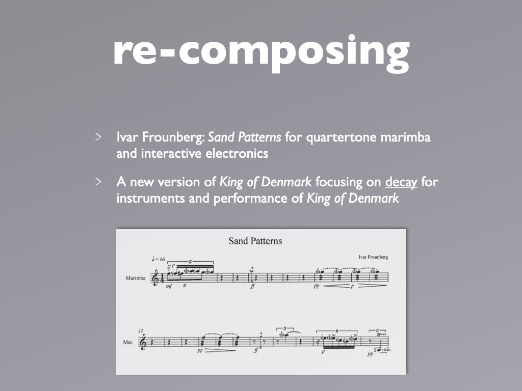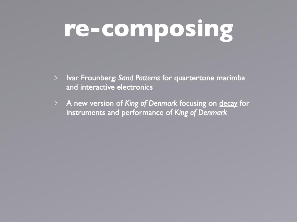 During the 3 years project, the team engaged with the music of Morton Feldman and Iannis Xenakis. The solo percussion pieces The King of Denmark and Psappha were the point of departure.