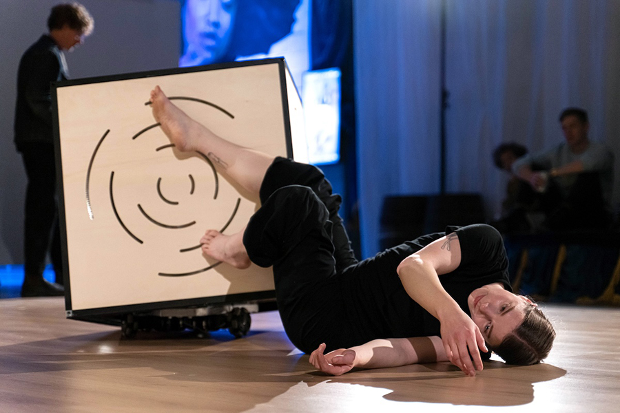 The Machine Movement Lab is a practice-based research project that explores resonance as both a material phenomenon and a generative force in our relationships with robots by aesthetically harnessing the asymmetries between human and machine bodies. While dominant visions of social robots remain trapped in our reflection, our practice moves beyond the mirror to investigate how resonance emerges through becoming-with difference-in-relation. Our methodology opens up a playground for dancers to entangle with machine artifacts, bodily probing how they mutually extend each other to explore their relational potential. Drawing on Barad’s concept of intra-action (2007), our practice foregrounds how agency is enacted through the dynamics of encounter, where subjects and objects co-constitute each other.