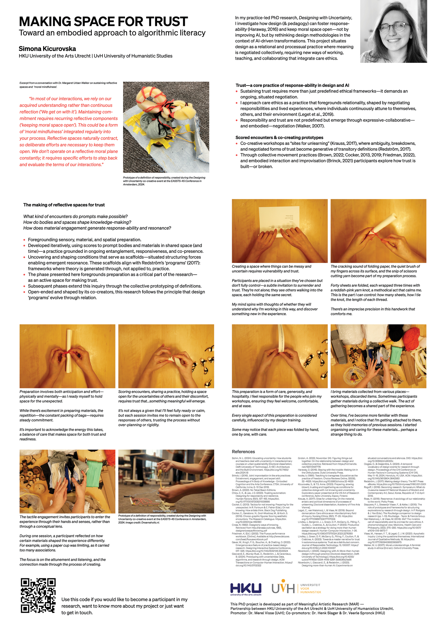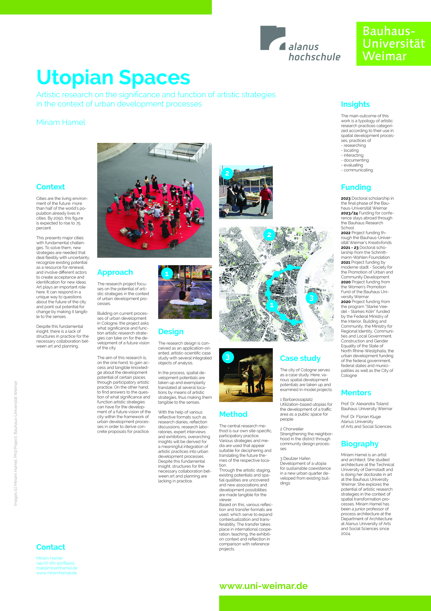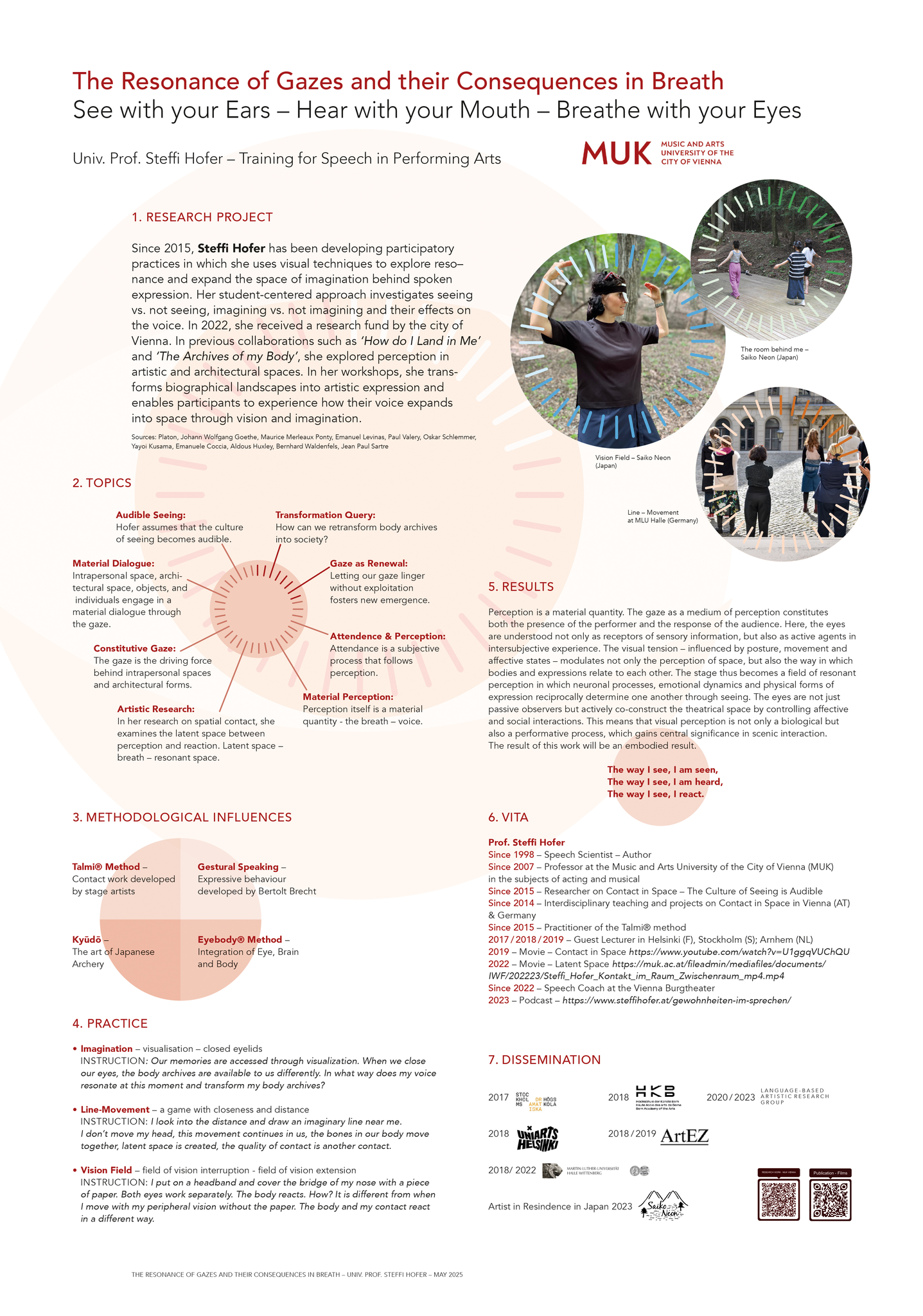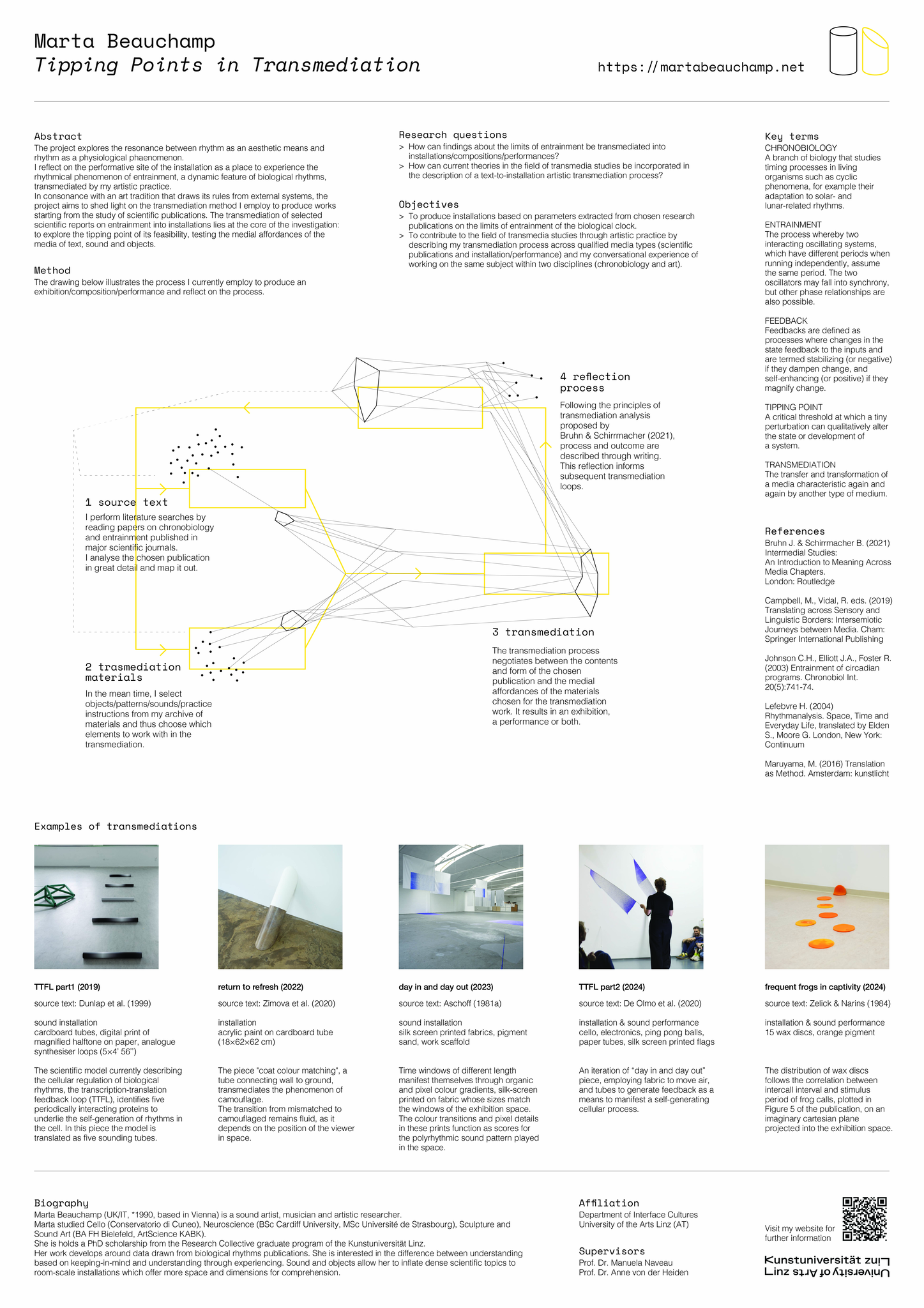 Resonance: The past decade witnessed the appearance of new debating spaces in artistic research. At a time when art and culture, local and global policies, and events are haunted by societal challenges as vast as they are unpredictable, what can artistic researchers offer in response to these concerns? How can artistic research resonate beyond its specific contexts and disciplinary borders? Resonance is a prompt to address the transformative nature of artistic research as a connective element that evokes a response and qualifies our experiences as meaningful. However, it can also be understood as a critical tool characterizedcharacterised by reciprocity and mutual transformation. Resonance is a response to personal and societal challenges both poetically and through modes of political imagination and transformative meeting spaces. Getting into resonance is to create a relation between artistic research and the world that requires questioning and answering, but also the ability to change and be changed.