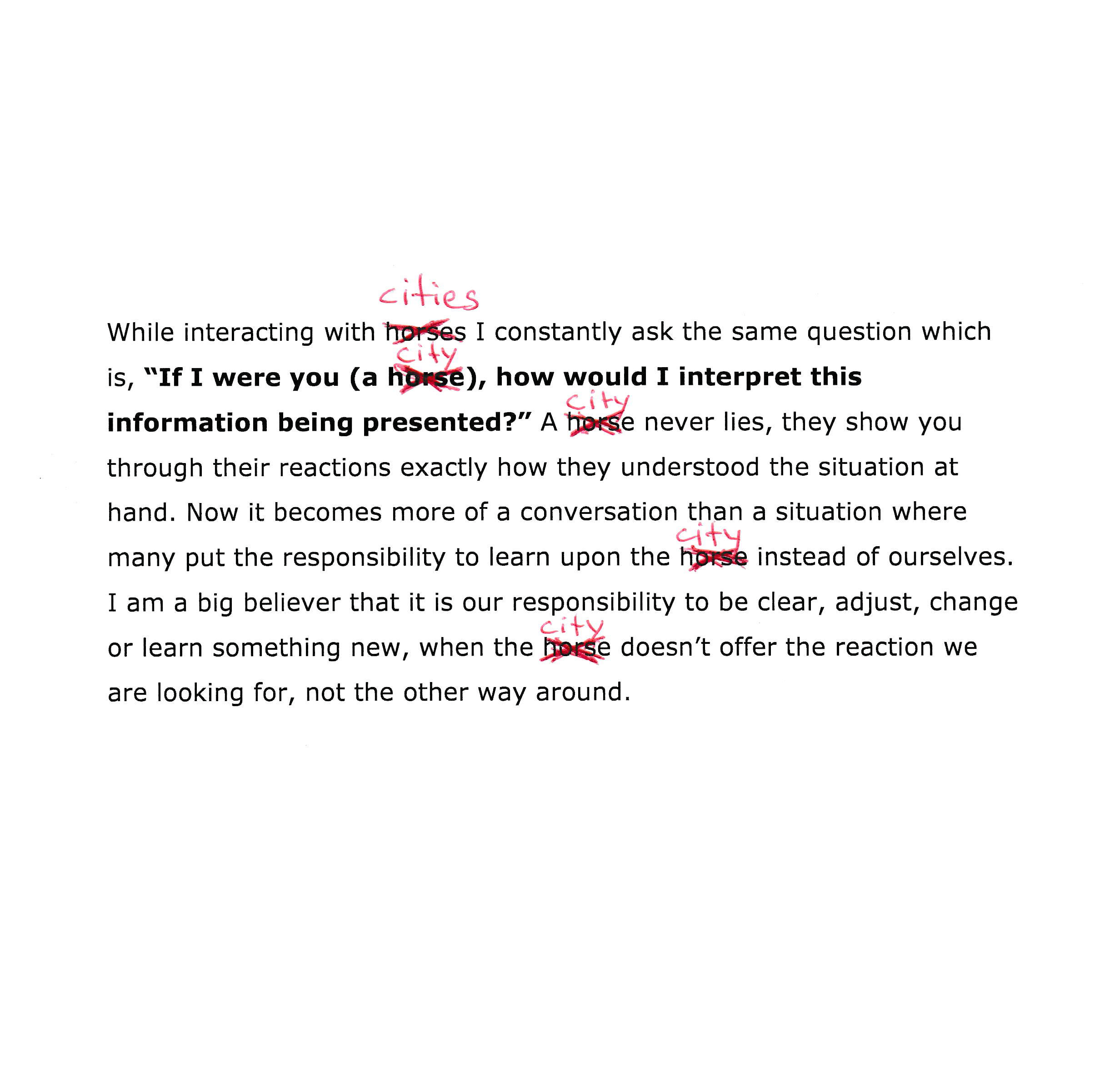 The City Whisperer, 2015, Denise Ziegler, research intervention in a text about a horse whisperer’s experience