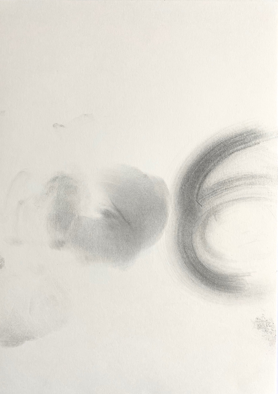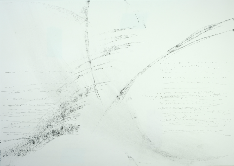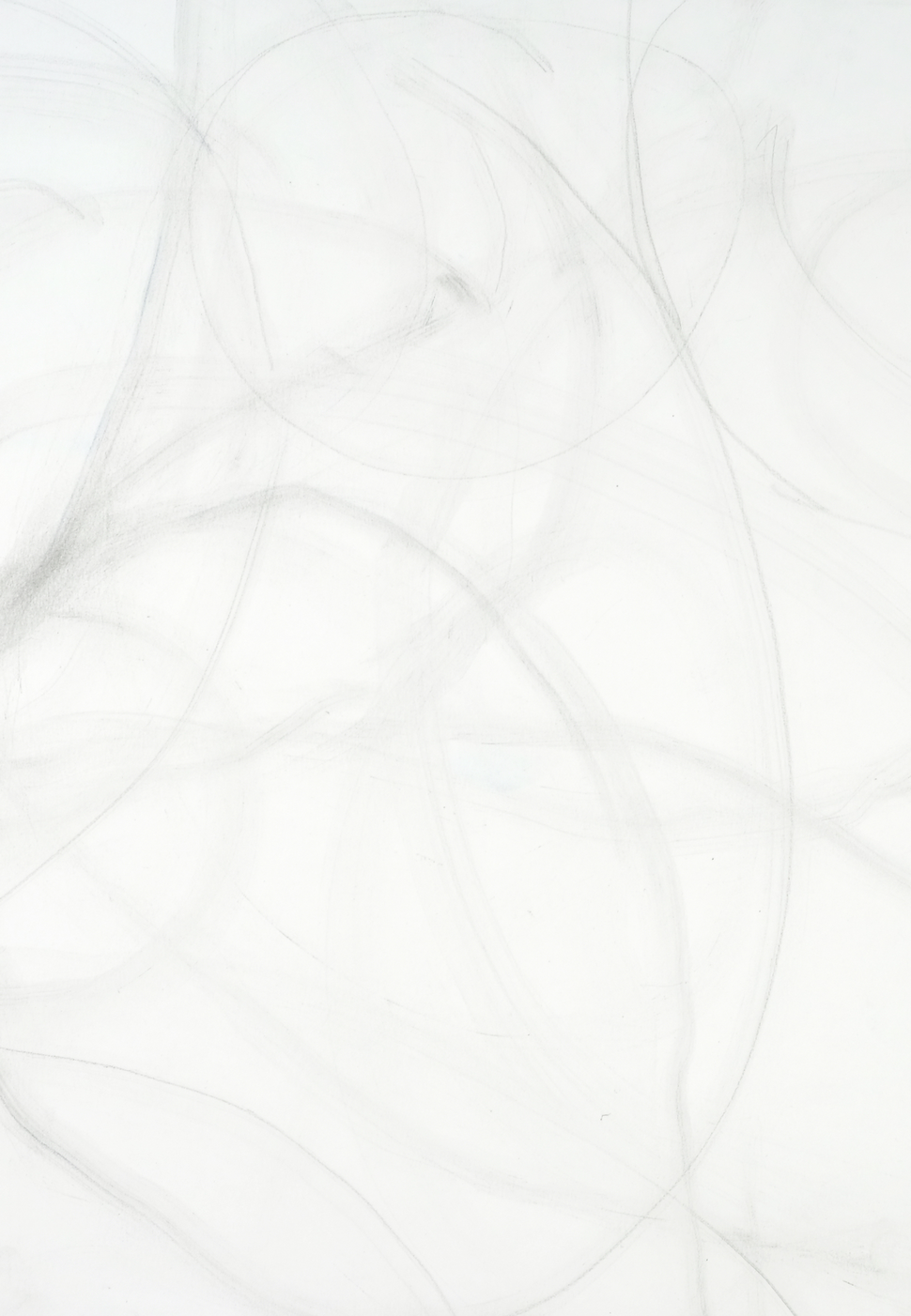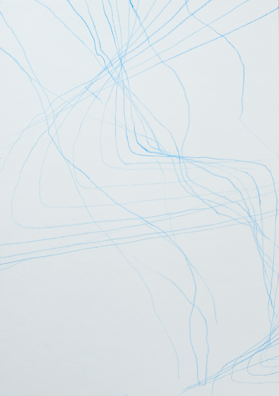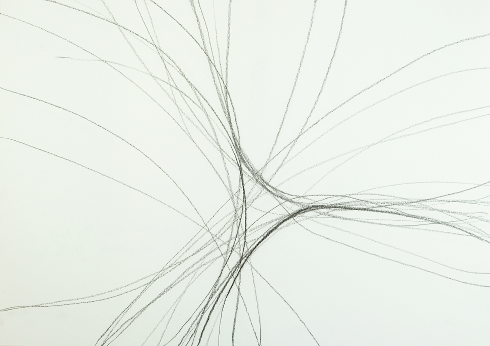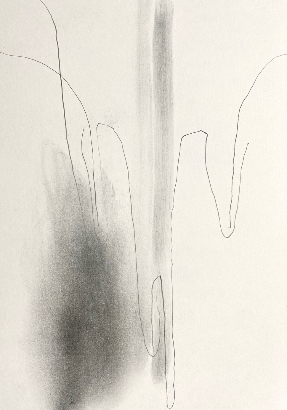 IV. Possible crystallisations of meaning. An extension of the non-verbal, expanding. No hurry. Not yet. Not yet. Inhaling, exhaling. Drawing into and drawing out. A remembered experience – there it has to develop. A decision in multiple touch, in touch with multiple surfaces. A sense of recognising. This play of momentums. Realising resonance. Sinking. Sensible boundaries, or rather changes in curvature. Constantly breathing in and out. Concurrency intervening, just appearing. Coming back to time, realising. Letting. Listening. Wondering, intermingling. This bleed of the present, opening and closing, constantly deciding. There is a call there. Drawing in and drawing out. Conditions changing, sensorially open. Edges sharpen, an indeterminate beyond. A line, a line shimmers and falls back. Airing. Trembling. Blurring. Pulsing. Wavering. Pressing. Pulsing. In touch, of surface, of line, of hand, of edge. Soft letting, leaning. Turning elsewhere. A liminal space between seeing and touching. These shifts in register, turning. Changes of angle, of perspective. A reorientation of the page. In the blankness, an opening. Invitation, for some intervention. Crystallisations of meaning, concurrency intervening. Concurrency as a way of proceeding. Trusting, trusting, following the trusting. Drop of expectation, to be surprised again. Changing, yet maintaining slowness. Sensorially open, this shifts of register and perspective. Deactivating the willing, a change in mode might feel necessary. Barely perceptible reorganisation of possibilities. A decision is revealed – yet not cut is made, to de-cision. Fluid, disappearing. The space between sense and the coming to be of sense. Landscapes, edges, curvatures of sense. To stop and observe these edges, shifting. Shifts, observing, not focusing on anything else. Expansion. Blur of form expanding. Trembling. Disorientation, reorientation, reimagining. Reconnection of the lines, breaking. Expanding. A closer connection. Reconnection. The touch of unexpected line or edge. Testing. Nearness. Wavering line, occluding. Revealing, unveiling. Touching, meeting. Departing. Edging. Edging towards. Edging away from. Moving into. Into stillness, a slowness. Disappearance. How to wait for the other? Not about. Disappearing. Seeing. Transfer the focus, the impulse. A small blank space. Extension of the non-verbal, expanding. It has to develop. Letting. Observing. A quality of in-between-ness. Letting as a different kind of decision unfolding, oscillating, not forcing. This sense of movement, this happening.
