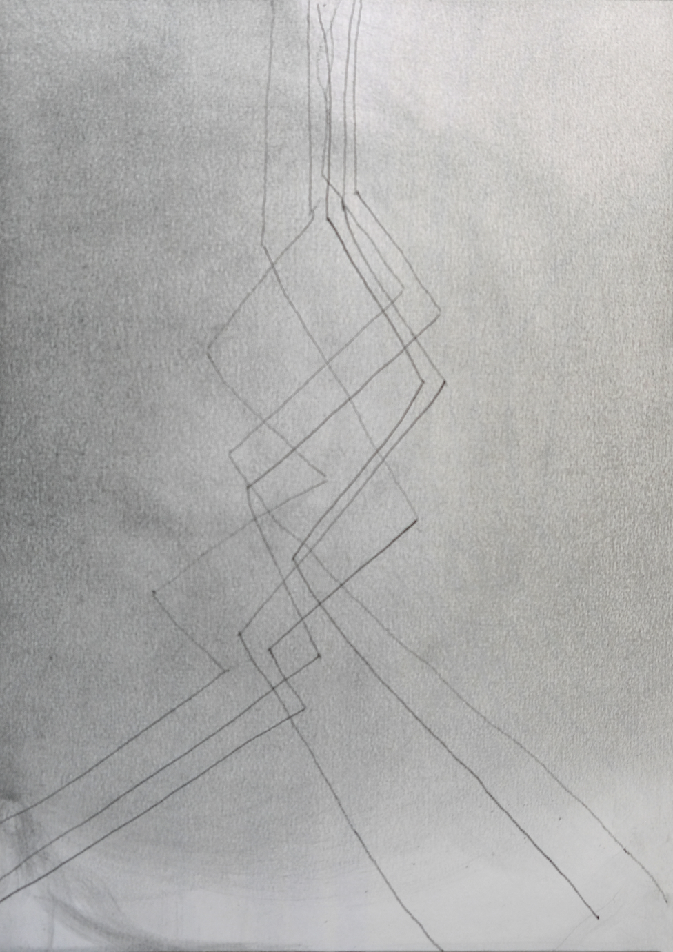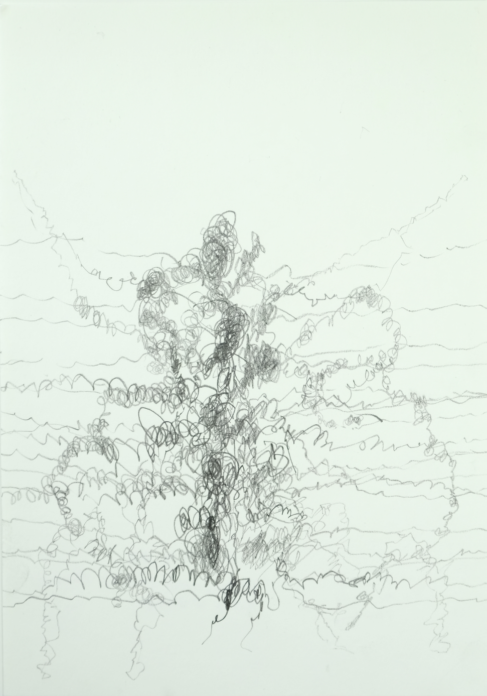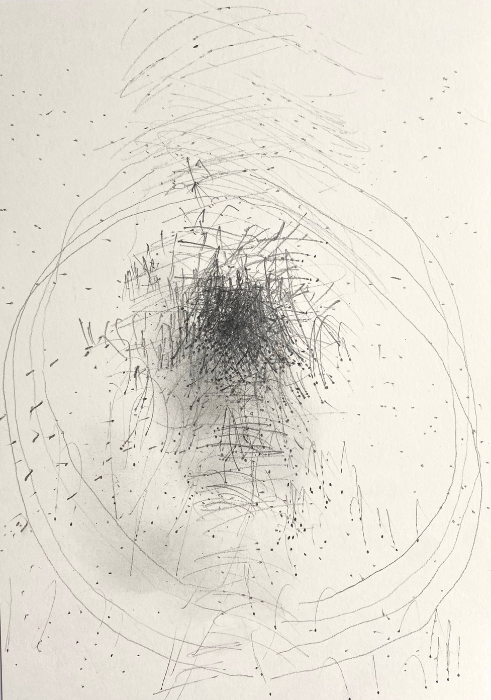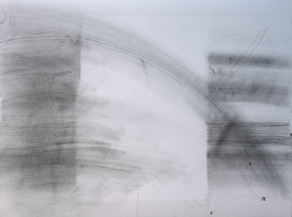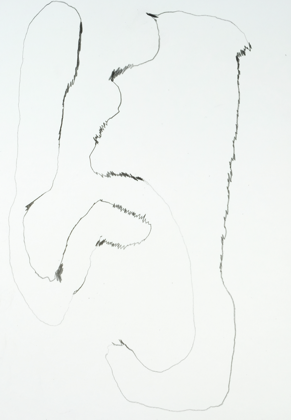 IV. Possible crystallisations of meaning. An extension of the non-verbal, expanding. No hurry. Not yet. Not yet. Inhaling, exhaling. Drawing into and drawing out. A remembered experience – there it has to develop. A decision in multiple touch, in touch with multiple surfaces. A sense of recognising. This play of momentums. Realising resonance. Sinking. Sensible boundaries, or rather changes in curvature. Constantly breathing in and out. Concurrency intervening, just appearing. Coming back to time, realising. Letting. Listening. Wondering, intermingling. This bleed of the present, opening and closing, constantly deciding. There is a call there. Drawing in and drawing out. Conditions changing, sensorially open. Edges sharpen, an indeterminate beyond. A line, a line shimmers and falls back. Airing. Trembling. Blurring. Pulsing. Wavering. Pressing. Pulsing. In touch, of surface, of line, of hand, of edge. Soft letting, leaning. Turning elsewhere. A liminal space between seeing and touching. These shifts in register, turning. Changes of angle, of perspective. A reorientation of the page. In the blankness, an opening. Invitation, for some intervention. Crystallisations of meaning, concurrency intervening. Concurrency as a way of proceeding. Trusting, trusting, following the trusting. Drop of expectation, to be surprised again. Changing, yet maintaining slowness. Sensorially open, this shifts of register and perspective. Deactivating the willing, a change in mode might feel necessary. Barely perceptible reorganisation of possibilities. A decision is revealed – yet not cut is made, to de-cision. Fluid, disappearing. The space between sense and the coming to be of sense. Landscapes, edges, curvatures of sense. To stop and observe these edges, shifting. Shifts, observing, not focusing on anything else. Expansion. Blur of form expanding. Trembling. Disorientation, reorientation, reimagining. Reconnection of the lines, breaking. Expanding. A closer connection. Reconnection. The touch of unexpected line or edge. Testing. Nearness. Wavering line, occluding. Revealing, unveiling. Touching, meeting. Departing. Edging. Edging towards. Edging away from. Moving into. Into stillness, a slowness. Disappearance. How to wait for the other? Not about. Disappearing. Seeing. Transfer the focus, the impulse. A small blank space. Extension of the non-verbal, expanding. It has to develop. Letting. Observing. A quality of in-between-ness. Letting as a different kind of decision unfolding, oscillating, not forcing. This sense of movement, this happening.
