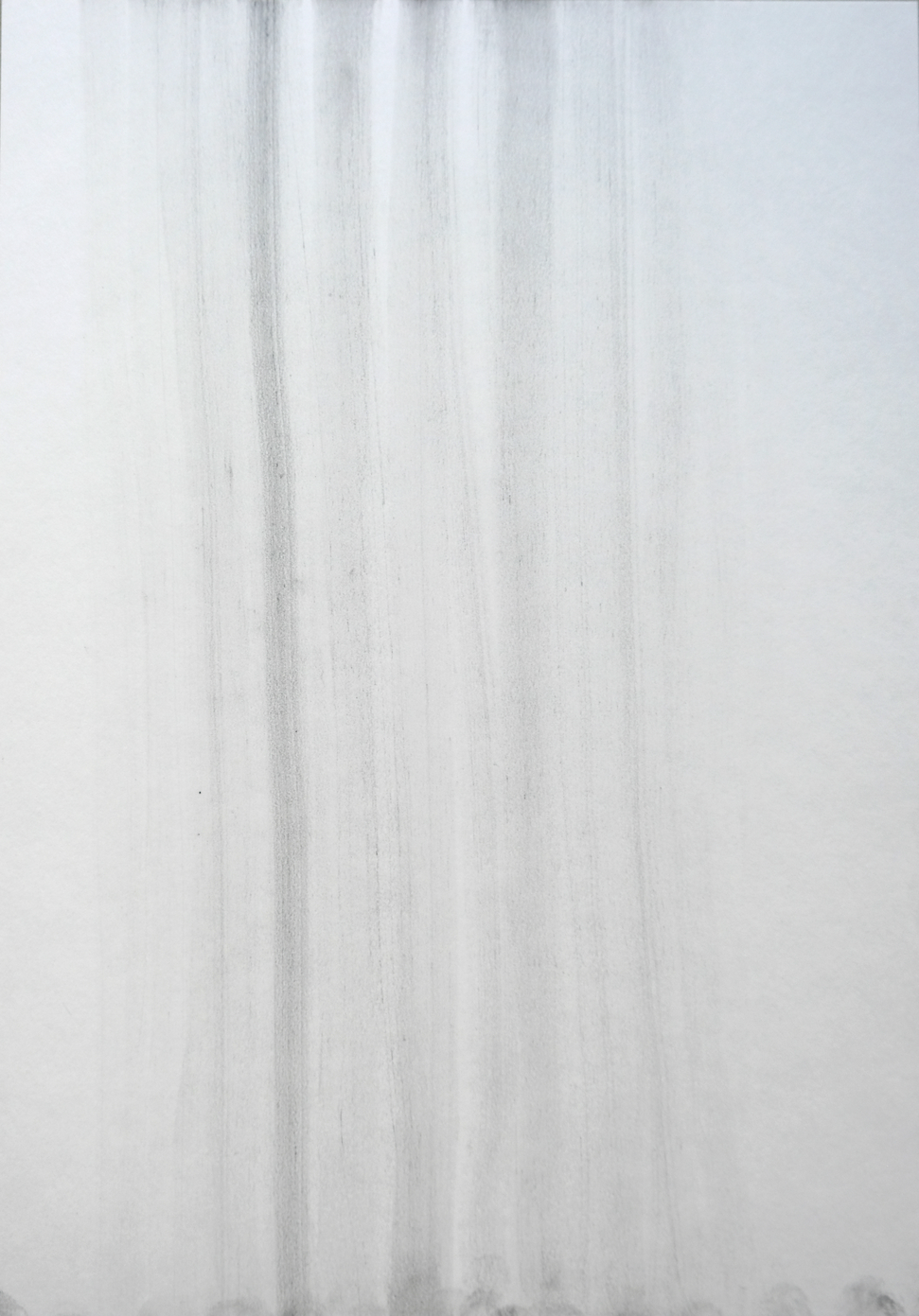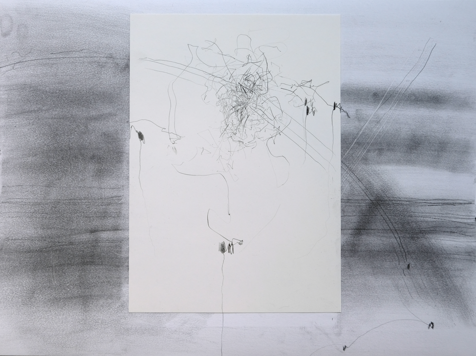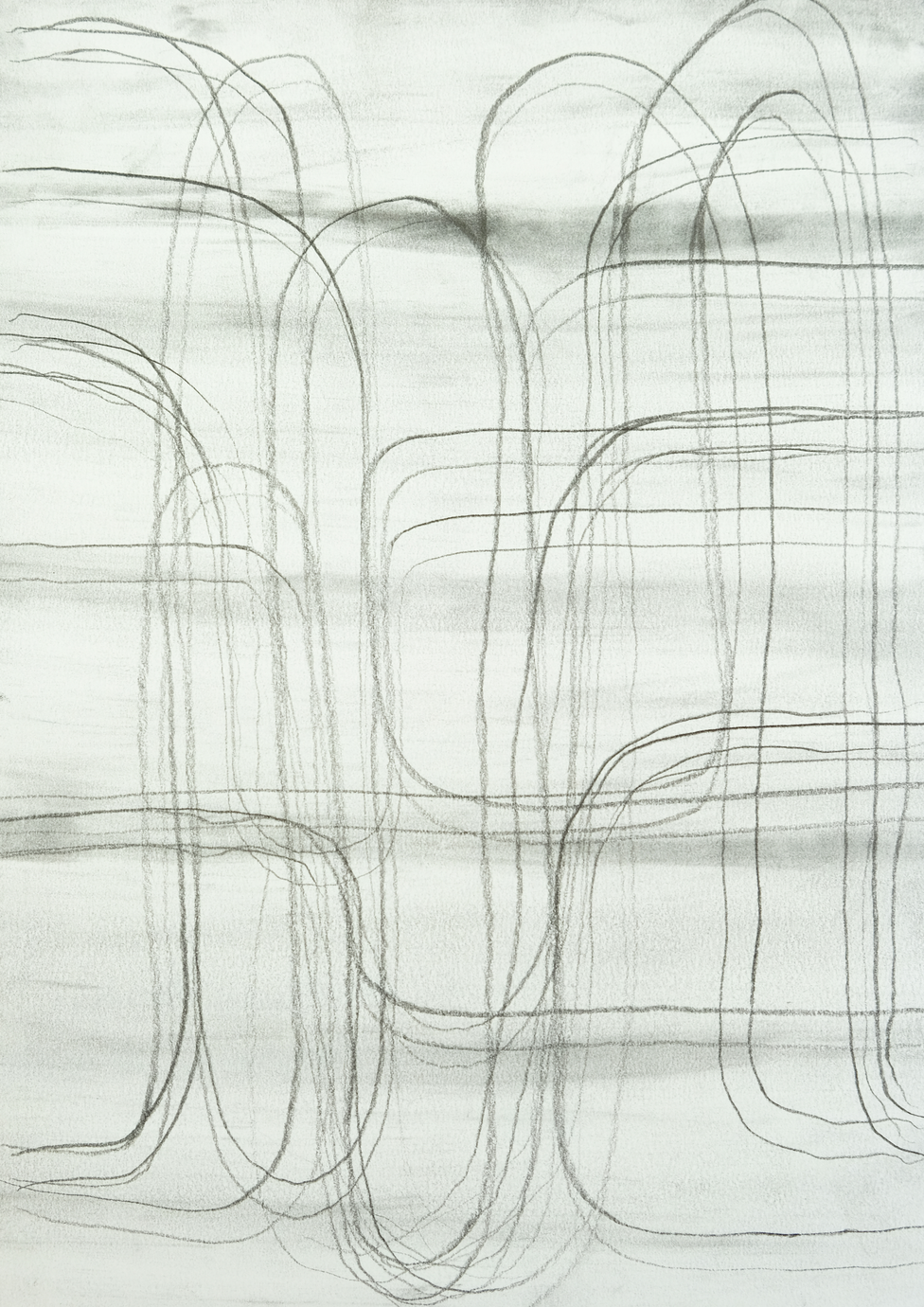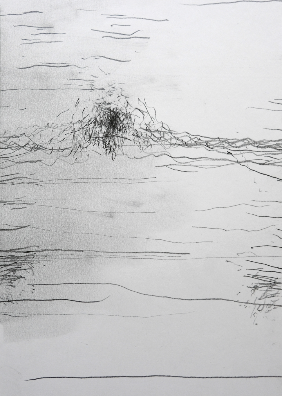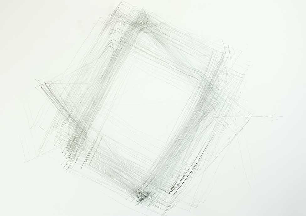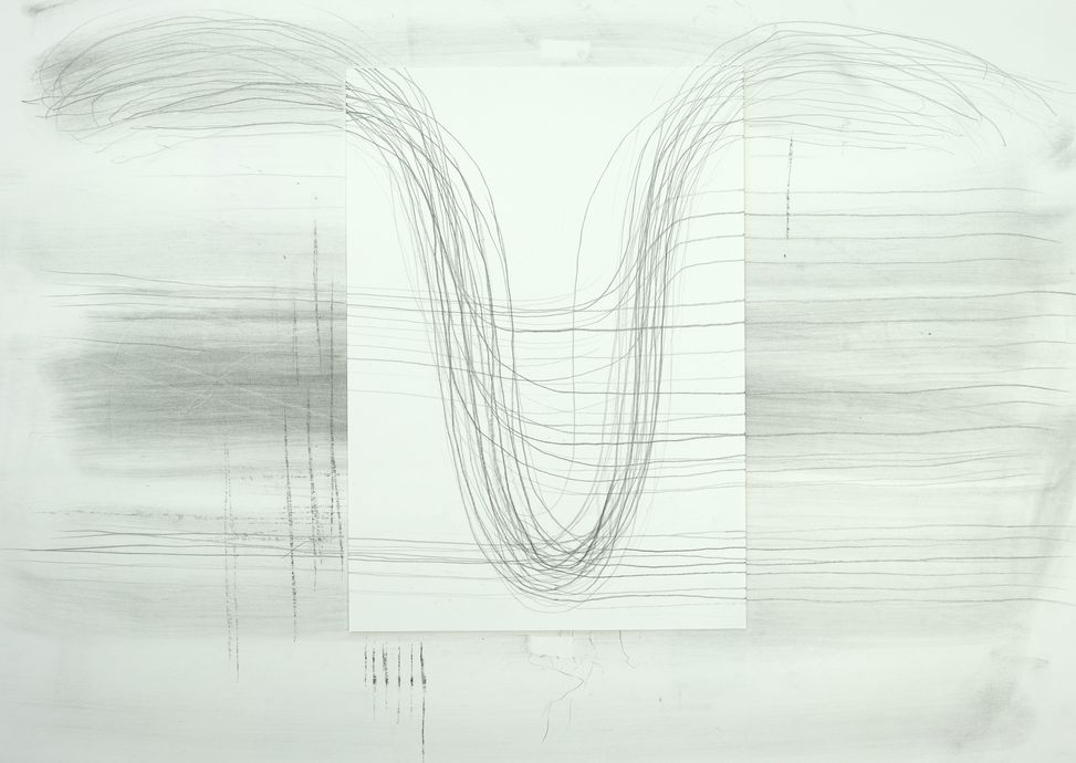 IV. Possible crystallisations of meaning. An extension of the non-verbal, expanding. No hurry. Not yet. Not yet. Inhaling, exhaling. Drawing into and drawing out. A remembered experience – there it has to develop. A decision in multiple touch, in touch with multiple surfaces. A sense of recognising. This play of momentums. Realising resonance. Sinking. Sensible boundaries, or rather changes in curvature. Constantly breathing in and out. Concurrency intervening, just appearing. Coming back to time, realising. Letting. Listening. Wondering, intermingling. This bleed of the present, opening and closing, constantly deciding. There is a call there. Drawing in and drawing out. Conditions changing, sensorially open. Edges sharpen, an indeterminate beyond. A line, a line shimmers and falls back. Airing. Trembling. Blurring. Pulsing. Wavering. Pressing. Pulsing. In touch, of surface, of line, of hand, of edge. Soft letting, leaning. Turning elsewhere. A liminal space between seeing and touching. These shifts in register, turning. Changes of angle, of perspective. A reorientation of the page. In the blankness, an opening. Invitation, for some intervention. Crystallisations of meaning, concurrency intervening. Concurrency as a way of proceeding. Trusting, trusting, following the trusting. Drop of expectation, to be surprised again. Changing, yet maintaining slowness. Sensorially open, this shifts of register and perspective. Deactivating the willing, a change in mode might feel necessary. Barely perceptible reorganisation of possibilities. A decision is revealed – yet not cut is made, to de-cision. Fluid, disappearing. The space between sense and the coming to be of sense. Landscapes, edges, curvatures of sense. To stop and observe these edges, shifting. Shifts, observing, not focusing on anything else. Expansion. Blur of form expanding. Trembling. Disorientation, reorientation, reimagining. Reconnection of the lines, breaking. Expanding. A closer connection. Reconnection. The touch of unexpected line or edge. Testing. Nearness. Wavering line, occluding. Revealing, unveiling. Touching, meeting. Departing. Edging. Edging towards. Edging away from. Moving into. Into stillness, a slowness. Disappearance. How to wait for the other? Not about. Disappearing. Seeing. Transfer the focus, the impulse. A small blank space. Extension of the non-verbal, expanding. It has to develop. Letting. Observing. A quality of in-between-ness. Letting as a different kind of decision unfolding, oscillating, not forcing. This sense of movement, this happening.