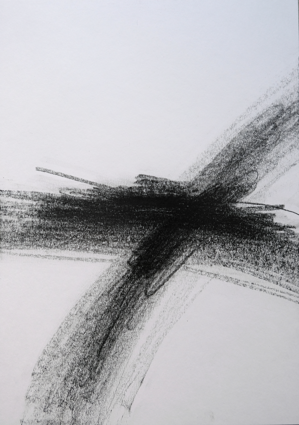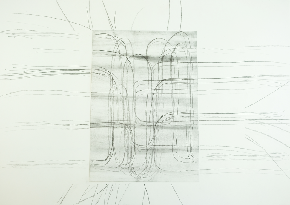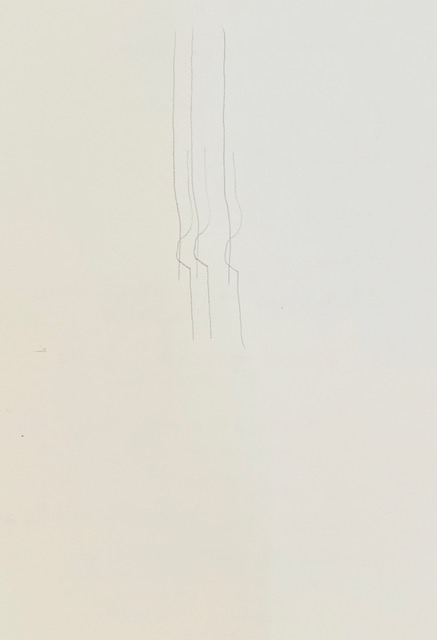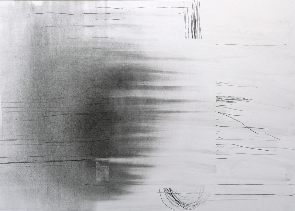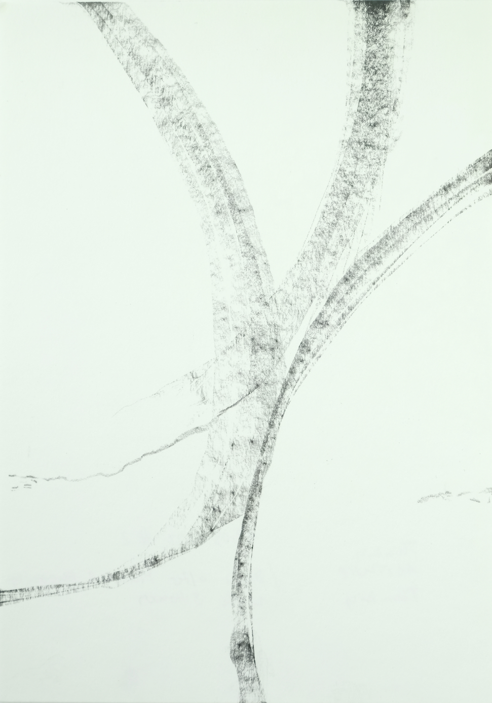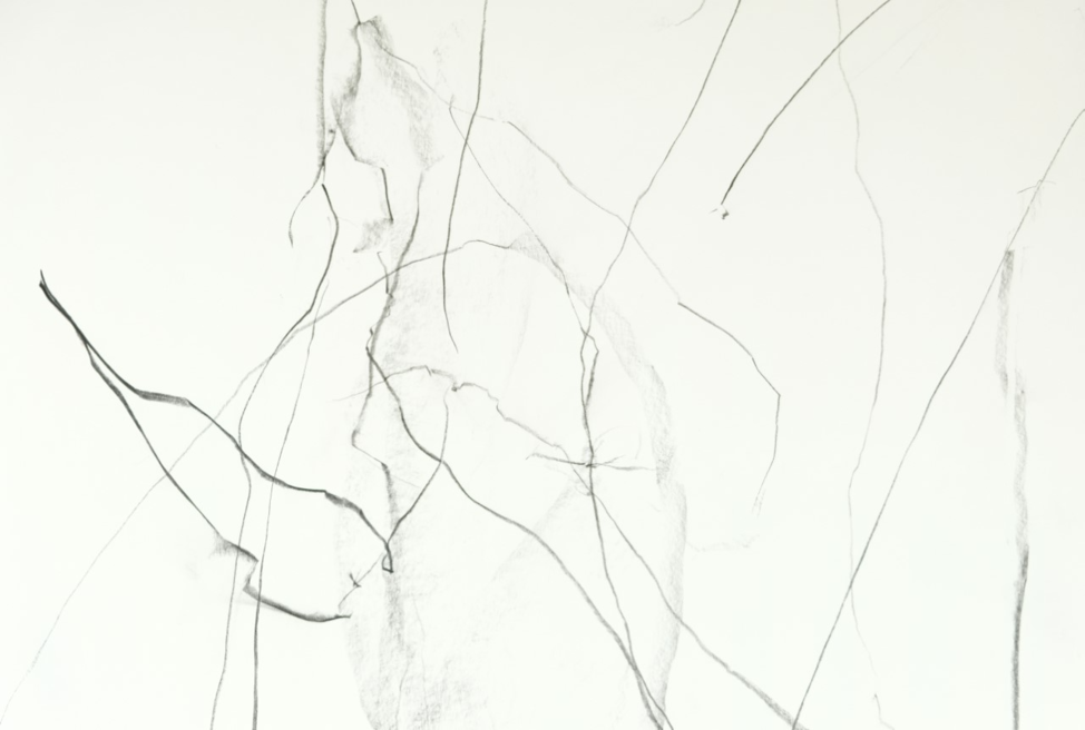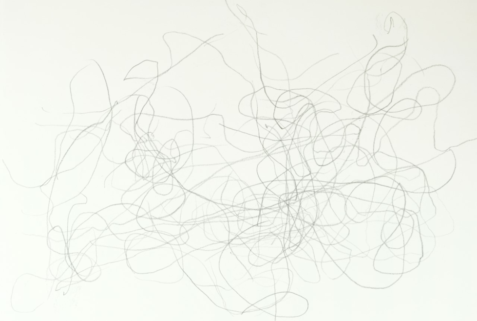 IV. Possible crystallisations of meaning. An extension of the non-verbal, expanding. No hurry. Not yet. Not yet. Inhaling, exhaling. Drawing into and drawing out. A remembered experience – there it has to develop. A decision in multiple touch, in touch with multiple surfaces. A sense of recognising. This play of momentums. Realising resonance. Sinking. Sensible boundaries, or rather changes in curvature. Constantly breathing in and out. Concurrency intervening, just appearing. Coming back to time, realising. Letting. Listening. Wondering, intermingling. This bleed of the present, opening and closing, constantly deciding. There is a call there. Drawing in and drawing out. Conditions changing, sensorially open. Edges sharpen, an indeterminate beyond. A line, a line shimmers and falls back. Airing. Trembling. Blurring. Pulsing. Wavering. Pressing. Pulsing. In touch, of surface, of line, of hand, of edge. Soft letting, leaning. Turning elsewhere. A liminal space between seeing and touching. These shifts in register, turning. Changes of angle, of perspective. A reorientation of the page. In the blankness, an opening. Invitation, for some intervention. Crystallisations of meaning, concurrency intervening. Concurrency as a way of proceeding. Trusting, trusting, following the trusting. Drop of expectation, to be surprised again. Changing, yet maintaining slowness. Sensorially open, this shifts of register and perspective. Deactivating the willing, a change in mode might feel necessary. Barely perceptible reorganisation of possibilities. A decision is revealed – yet not cut is made, to de-cision. Fluid, disappearing. The space between sense and the coming to be of sense. Landscapes, edges, curvatures of sense. To stop and observe these edges, shifting. Shifts, observing, not focusing on anything else. Expansion. Blur of form expanding. Trembling. Disorientation, reorientation, reimagining. Reconnection of the lines, breaking. Expanding. A closer connection. Reconnection. The touch of unexpected line or edge. Testing. Nearness. Wavering line, occluding. Revealing, unveiling. Touching, meeting. Departing. Edging. Edging towards. Edging away from. Moving into. Into stillness, a slowness. Disappearance. How to wait for the other? Not about. Disappearing. Seeing. Transfer the focus, the impulse. A small blank space. Extension of the non-verbal, expanding. It has to develop. Letting. Observing. A quality of in-between-ness. Letting as a different kind of decision unfolding, oscillating, not forcing. This sense of movement, this happening.
